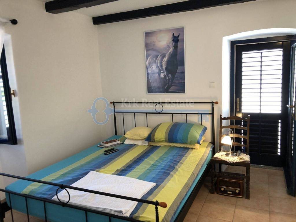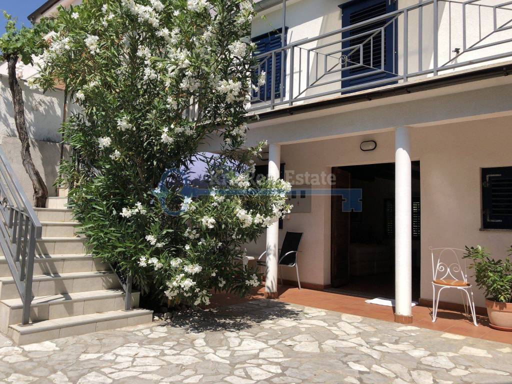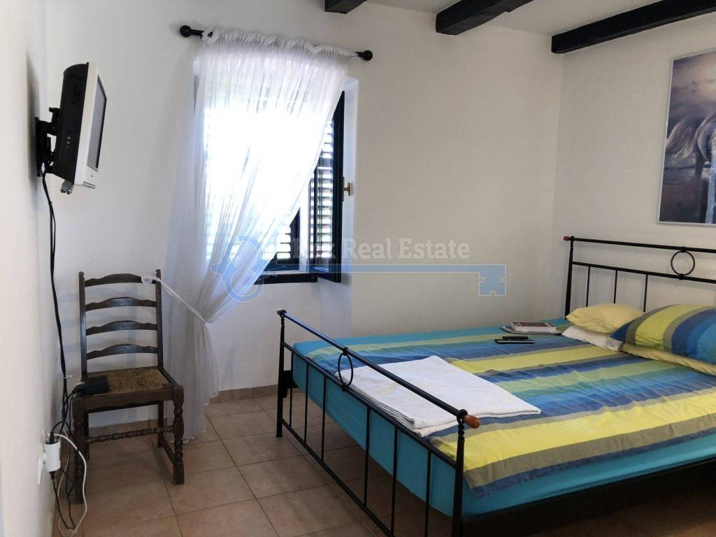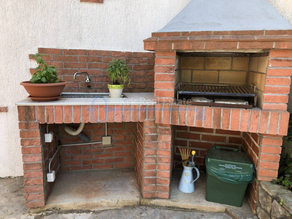 For sale is a renovated stone house with a residential area of 103 sqm with garage. The house consists of living room, kitchen and dining room, bathroom and terrace on the ground floor, and two bedrooms with bathroom on the first floor. On the garden are barbecue and terrace. It is located in a quiet location, away from the sea 1200 meters, and from the center only 200 meters.