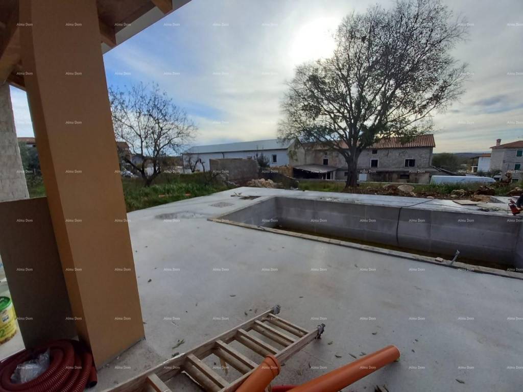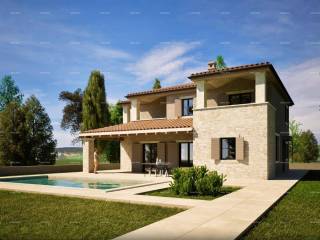 For sale is a beautiful new house with a pool, located in a quiet area of Kaštelir, with an open view of the sea. The total gross area is 183.30 m², while the net area is 161.81 m². The property consists of a ground floor and an upper floor, designed for comfortable living and a functional layout.GROUND FLOOR- entrance hallway- spacious kitchen connected to the living room and dining area- bedroom- bathroom- separate toilet- covered terrace with access to the pool- storage roomUPPER FLOOR- three bedrooms, each with its own terrace- two bathroomsEXTERIOR- pool with sunbathing area- spacious yard- peaceful location surrounded by greenery- parking spacesThis property is ideal for family living or tourist rental.For more information and to schedule a viewing, please contact:Azra +385 91 611 5706 +385 98 420 885 azra@almadominvest.com
