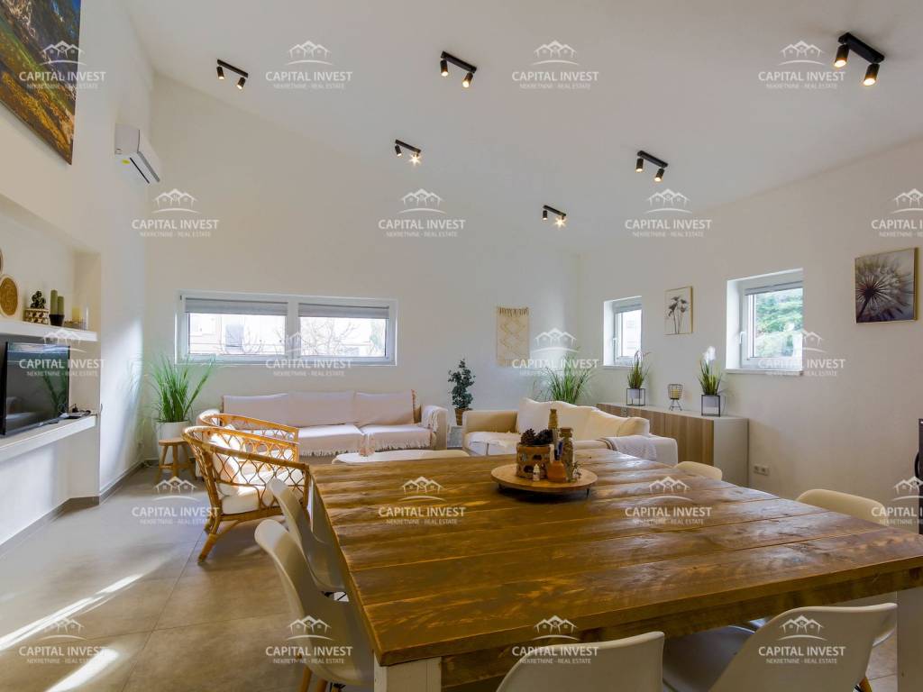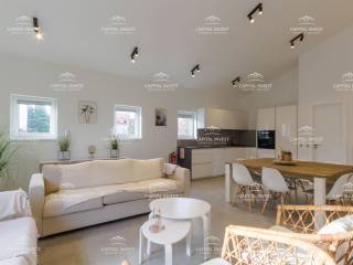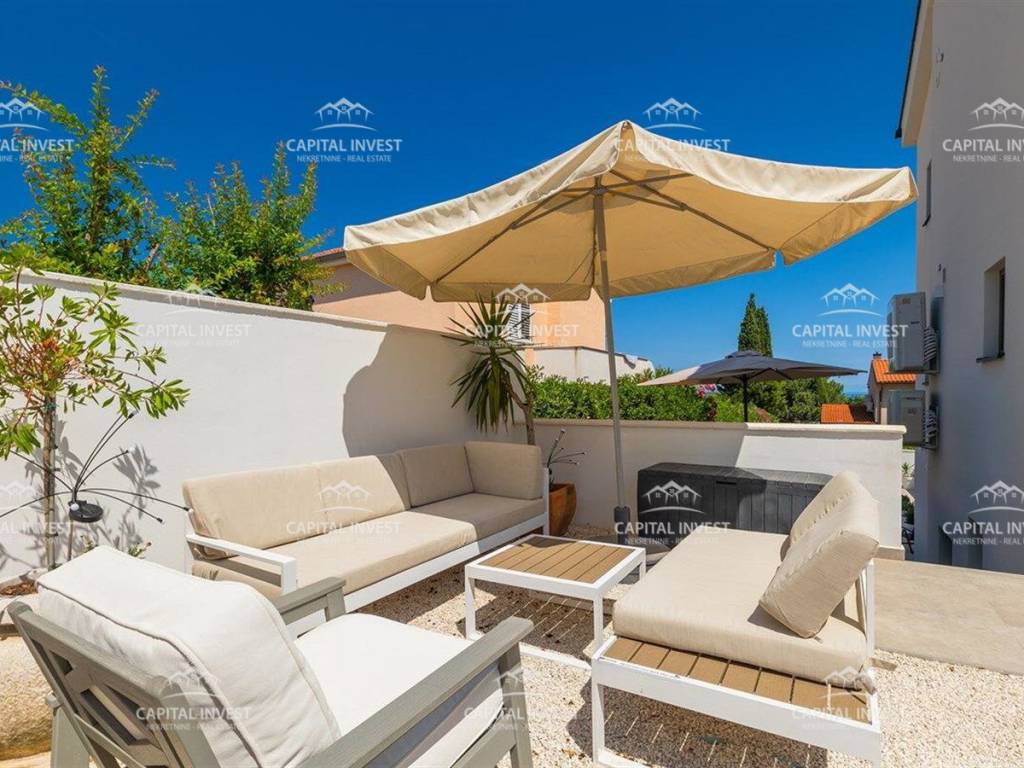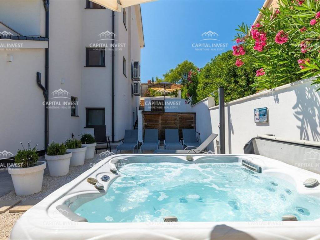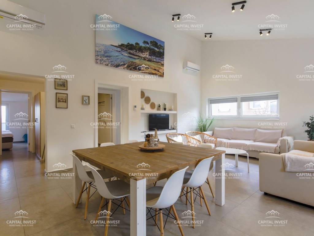 We are selling a four-room apartment with an area of 105 m2, located on the first floor in an attractive part of Premantura, Medulin. The apartment stands out with its modern design and thoughtful layout, featuring three bedrooms, a spacious kitchen, dining room, and living room, three bathrooms, and additional rooms that provide comfort and practicality for everyday living. The apartment's north and south orientation allows plenty of natural light throughout the day, emphasizing a very sunny atmosphere in the space. The interior is equipped with modern appliances, including a dishwasher, washing machine, TV, bed, and a functional kitchen with appliances. Two covered terraces offer a beautiful view of the sea and nature, as well as the possibility to relax in the fresh air. The apartment has air conditioning and electric heating, and the parking lot ensures convenience for everyday life. The landscaped yard of 100 m2, barbecue, and jacuzzi further enrich the offer, making this property the right choice for those seeking quality living in a peaceful environment. Pets are allowed, making this apartment suitable for families.