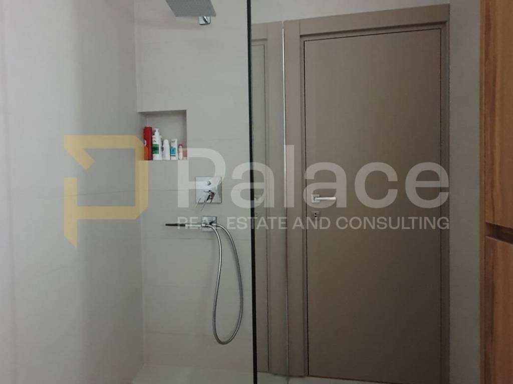 The apartment is carefully furnished with modern materials and fully equipped. Underfloor heating is installed in the living room, kitchen, bathroom, and entrance, while the bedrooms are covered with high-quality lacquered parquet. The loggia is glazed with sliding panels, allowing for a pleasant stay even in the extended season, and offers a partial view of the sea and greenery. The loggia also has space for a mini bar or barbecue.