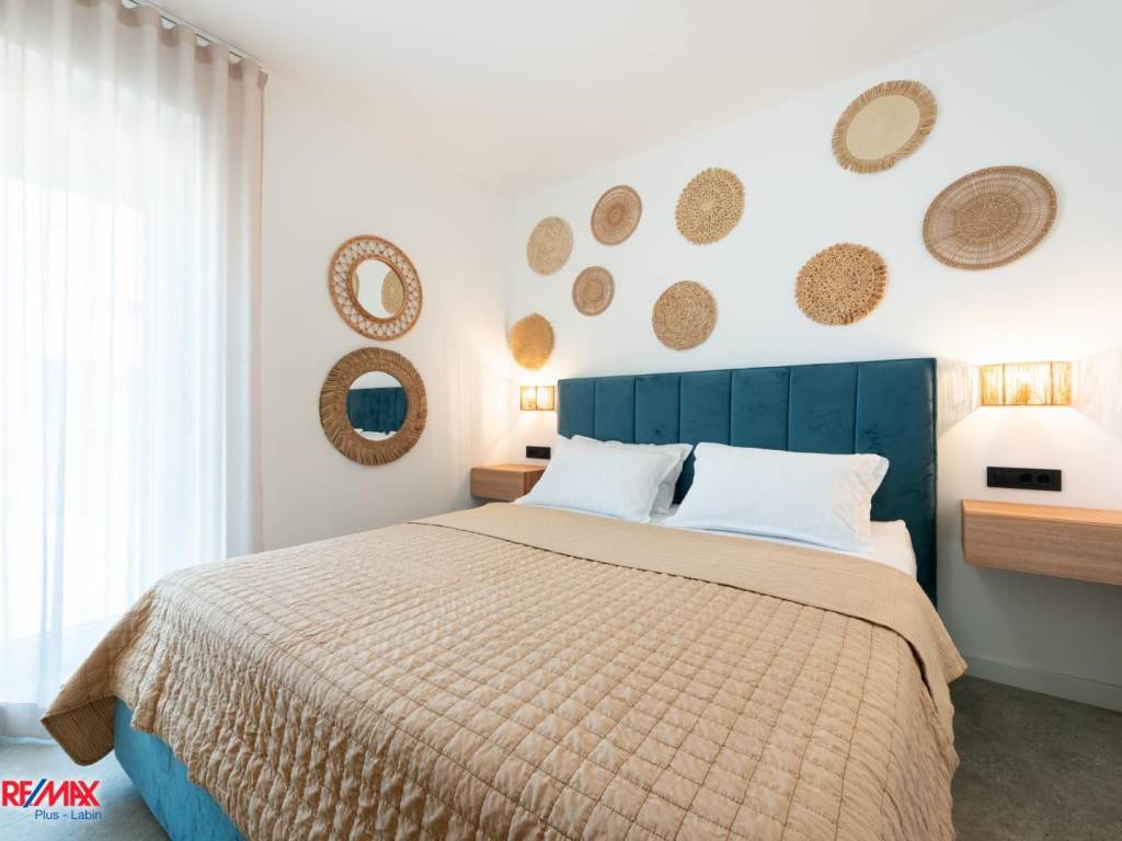 For sale is a fully equipped four-room apartment of 85 m², located on the ground floor of a small building with 6 units, in one of the most desirable areas between Poreč and Novigrad.