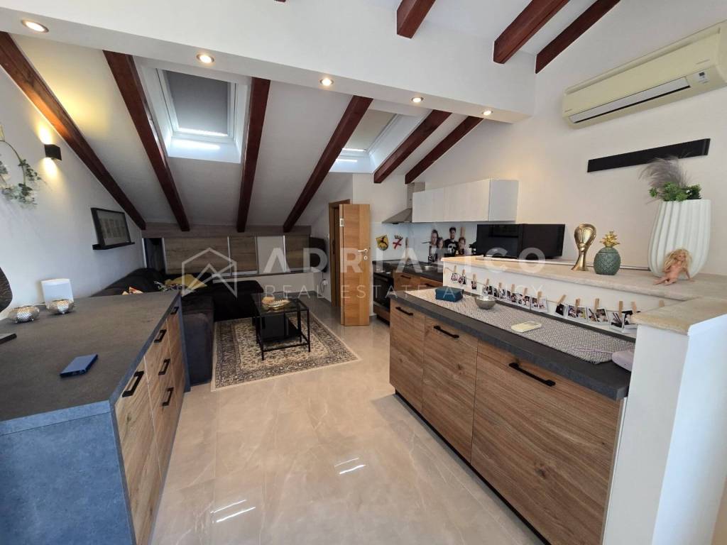 In the very heart of Rovinj, in the historic core of the old town, there is a rare opportunity - a luxurious duplex apartment of 60 m in a 16th century stone house. It is a combination of historical charm and contemporary elegance, and is reached by a modern spiral wooden staircase.
