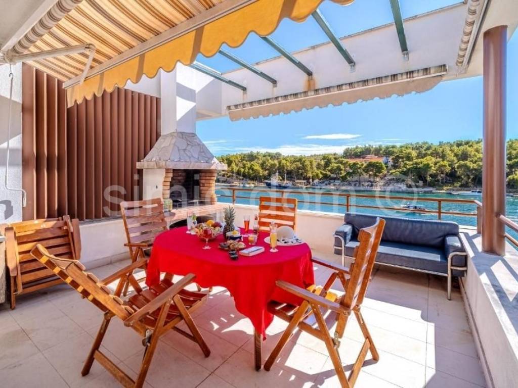 We are mediating the sale of an apartment villa first row to the sea, with direct access to the newly built waterfront in Milna on the island of Brac. It is a villa with a total of six two-bedroom, fully equipped and modernly decorated apartments. Specifically, there are four apartments of 50 m2 net area and two penthouse apartments of 60 m2 net area. The total net living area of the interior of the villa is 322 m2 and is located on a plot of 518 m2. The exterior of the villa includes spacious terraces of 280 m2 with a beautiful panoramic view of the sea and balconies. Each apartment has one parking space, making a total of six parking spaces. Ownership is in order.