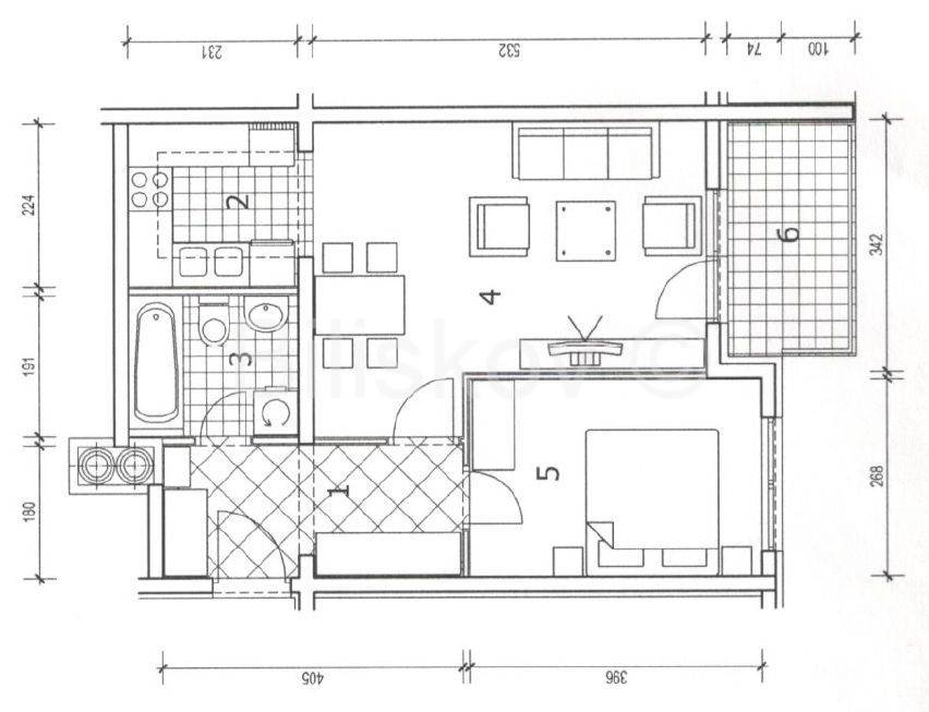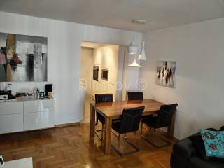 It consists of one bedroom, bathroom, living room connected to the kitchen and exit to the balcony. The apartment is equipped with all the necessary furniture, air conditioning, washing machine, dishwasher, oven, refrigerator, TV and security door, and it is located in the very center of the business zone of the workers and near all essential facilities and public transport.