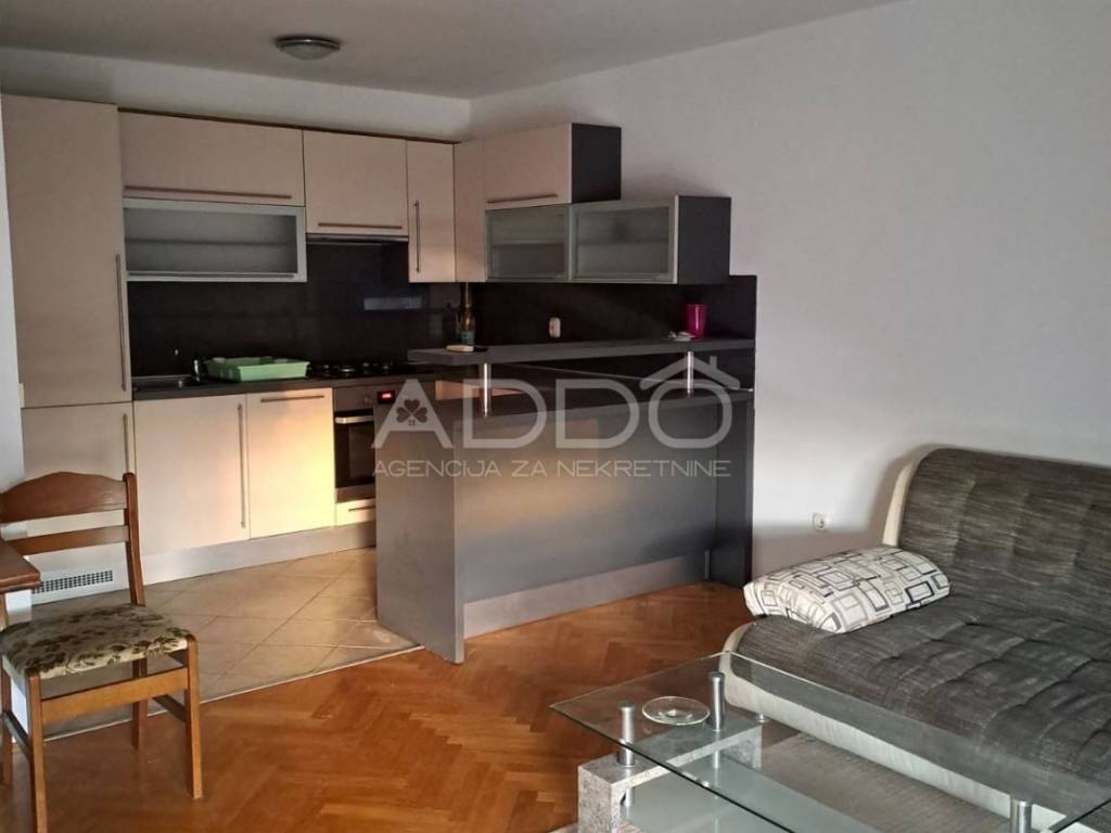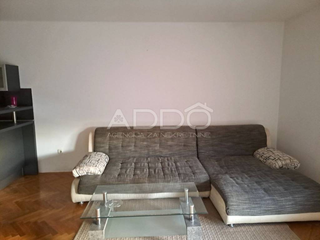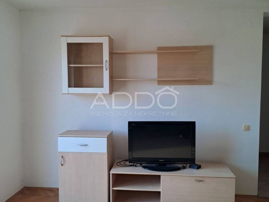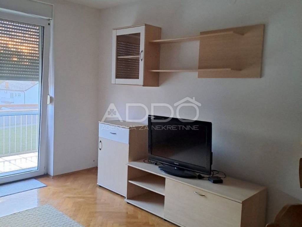 The apartment consists of an air-conditioned living room furnished with a shelf, a TV and a sofa, a dining room with a dining table and a kitchen with built-in appliances and an exit to the balcony with a beautiful view of the Valpovački Park.