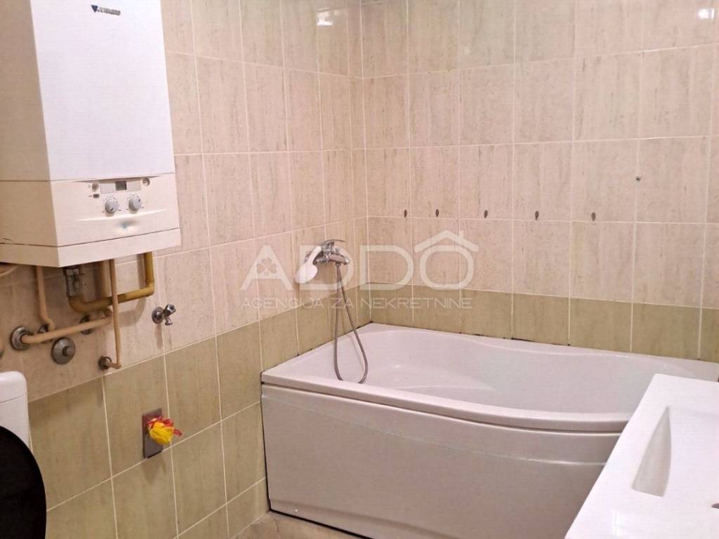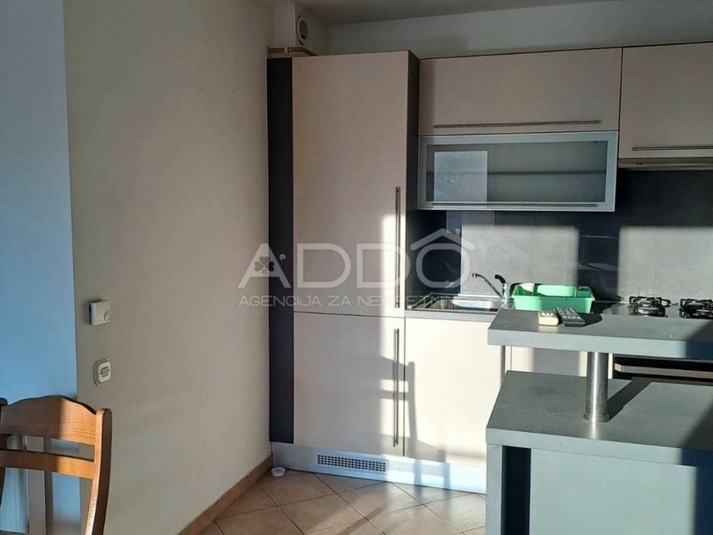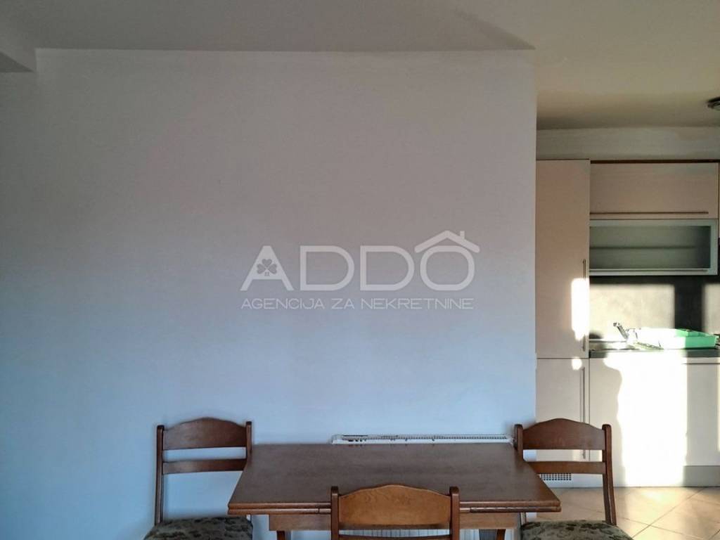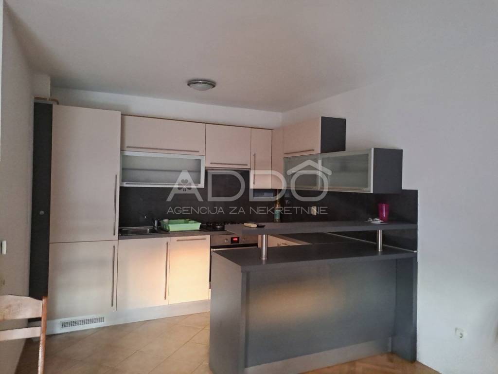 The apartment consists of an air-conditioned living room furnished with a shelf, a TV and a sofa, a dining room with a dining table and a kitchen with built-in appliances and an exit to the balcony with a beautiful view of the Valpovački Park.