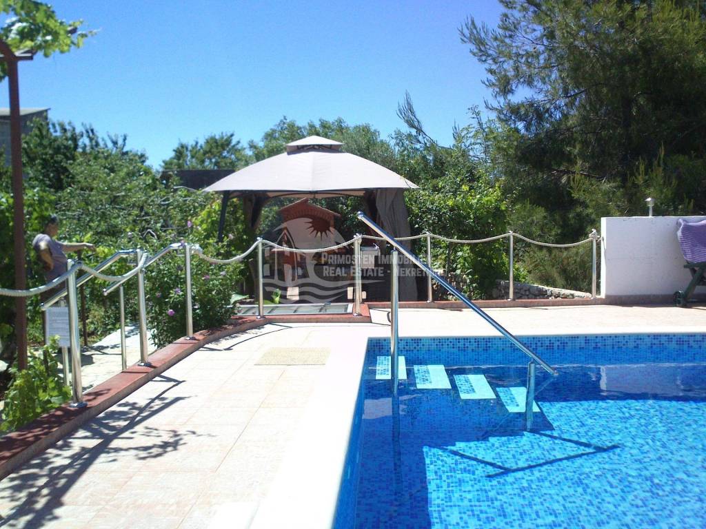 Large three-storey house near Primosten, 295 m², built on a plot of 700 m². In front of the house there is a pool of 32 m², and consists of a basement, ground floor and two floors. On the ground floor there is a three-room apartment arranged as follows: living room, kitchen, two bedrooms and two bathrooms. The apartment has access to the terrace and a large Mediterranean garden. On the first floor there are two apartments. On one side there is a studio apartment, and on the other side an apartment consisting of a living room, kitchen, two bedrooms and a bathroom. The apartments have access to the terrace. On the second floor there is a large apartment consisting of a living room, kitchen, three bedrooms and two bathrooms. The apartment has access to a large terrace overlooking the sea. In front of the house there is also a beautiful pavilion with a barbecue. The house is located in a quiet location.