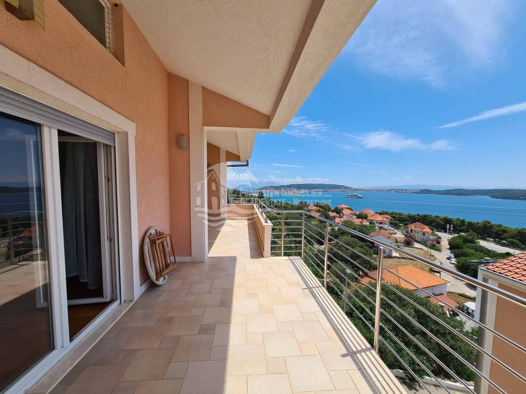 For sale is a Penthouse located near Trogir, in a great location with an enchanting view of the sea and islands. The apartment is located on the second floor of a residential building with 8 apartments. The penthouse is spread over two floors and has a total living area of 170 m2. The first floor is furnished and has 106 m2, while the upper floor is not and its area is 64 m2. The first floor consists of two bedrooms, a large bathroom with a jacuzzi, a spacious living room, a kitchen and a dining room, and a toilet. From the living room and the bedroom, you can go out to the terrace, which is 30 m2 and offers a panoramic view. The second bedroom has a balcony with a view. The apartment is air-conditioned and equipped with furniture and can be moved into immediately. The apartment has top-quality carpentry (22 mm extra class oak parquet, electric blinds, blind doors). It has one outdoor parking space. The ownership is 1/1. Do not miss this unique opportunity because this apartment is ideal for a year-round stay or tourist rental. It is located in a fantastic location close to all tourist attractions. For any additional information, contact us!