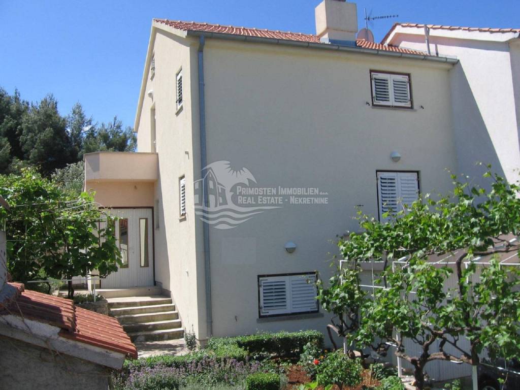 Beautiful semi-detached house in Zaborić, 100 meters from the sea, is located on a plot of 215 m2, and the living area is 140 m2. It consists of 3 floors (ground floor, first floor and high attic). On the ground floor of approximately 30 m2 there is a garage that is used as a summer kitchen and a place to relax. The first floor of approximately 55 m2 consists of a living room, toilet, kitchen and dining room that has access to a terrace with a partial view of the sea. An internal staircase leads to a high attic of approximately 55 m2 where there are 3 bedrooms, a hallway and a bathroom. The house is being sold fully furnished. There are two outdoor parking spaces in front of the house. This property is ideal for a summer vacation, but also for tourist rental. All documentation is in order.
