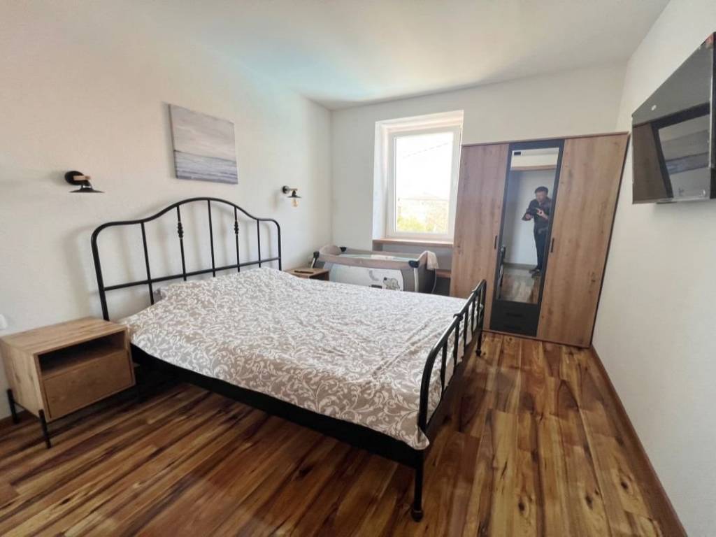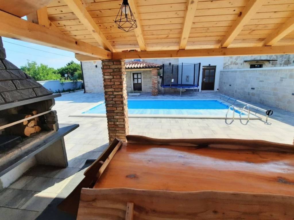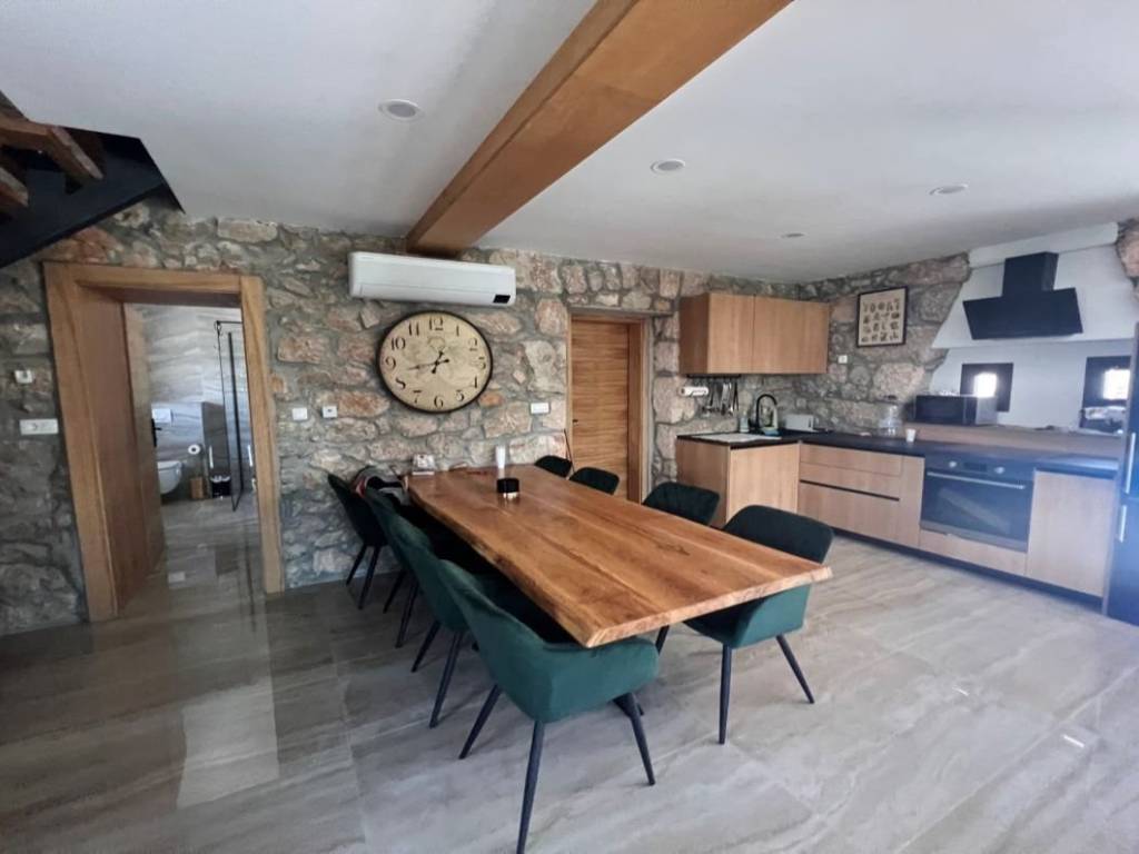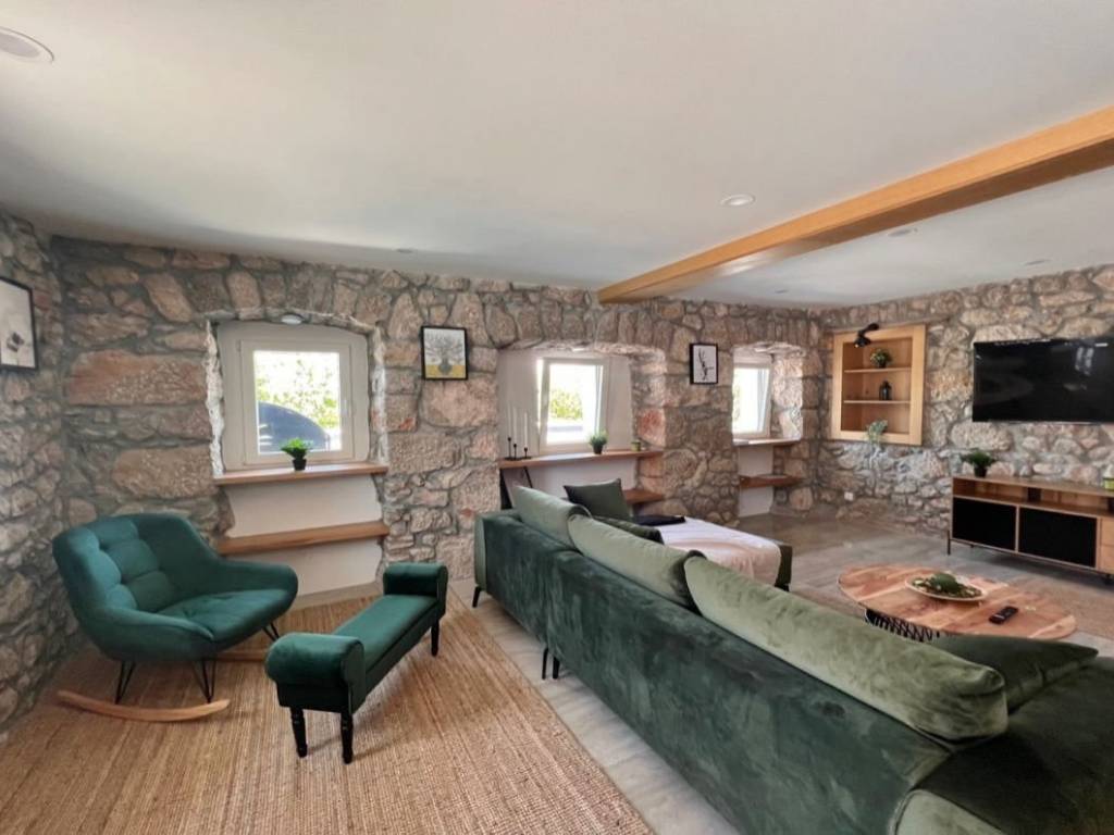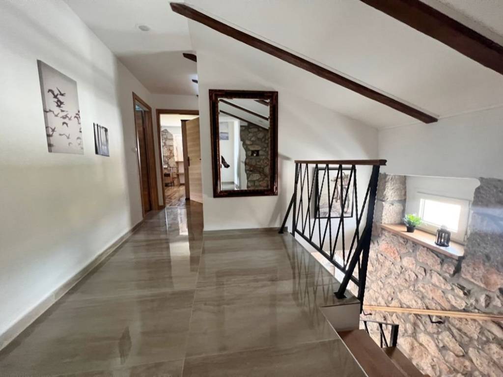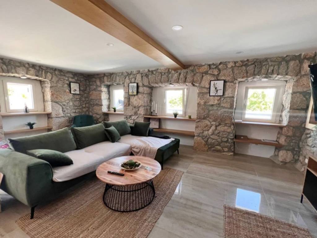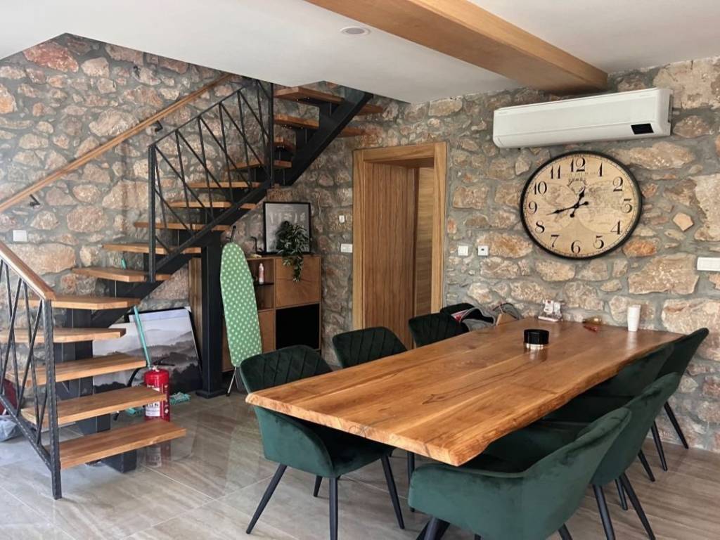 Otok Krk, Malinska, šire područje, prodaja nove dvojne kamene kuće površine 150 m2, s bazenom i uređenom okućnicom površine 276 m2, na mirnoj lokaciji! Kuća se sastoji od prizemlja s ulaznim prostorom, dnevnom sobom, kuhinjom, blagovaonom, stubištem, kupaonicom, vešerajem i spremištem te prvog kata s tri spavaće sobe, dvije kupaonice, toaletom, hodnikom i stubištem. Visoka kvaliteta gradnje i opreme, klimatizacija, dva parkirna mjesta. Udaljenost od plaže i centra Malinske 3000 m.