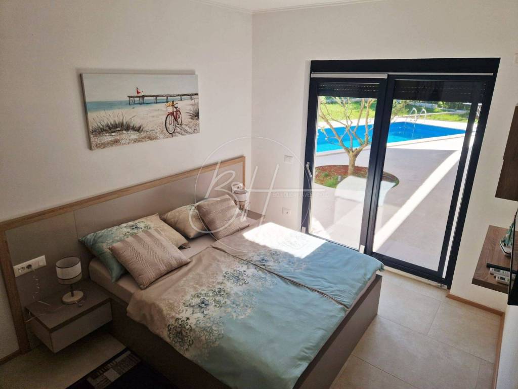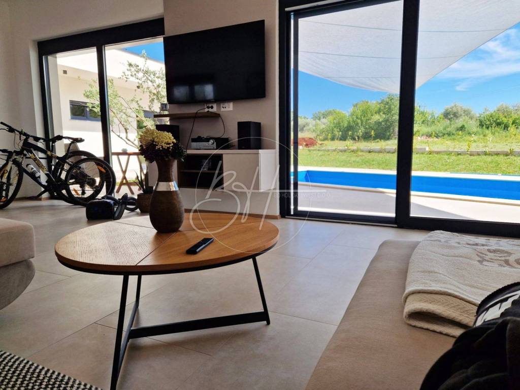 We are pleased to present this modern single-storey house located in a peaceful area surrounded by beautiful nature, yet close to the renowned tourist destination of Rovinj and just 2 km from the Lim Bay. A nearby cycling trail leads directly to Rovinj, making this location perfect for cycling enthusiasts.