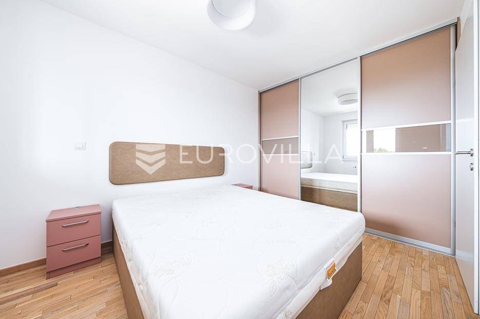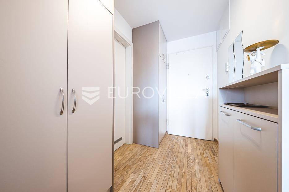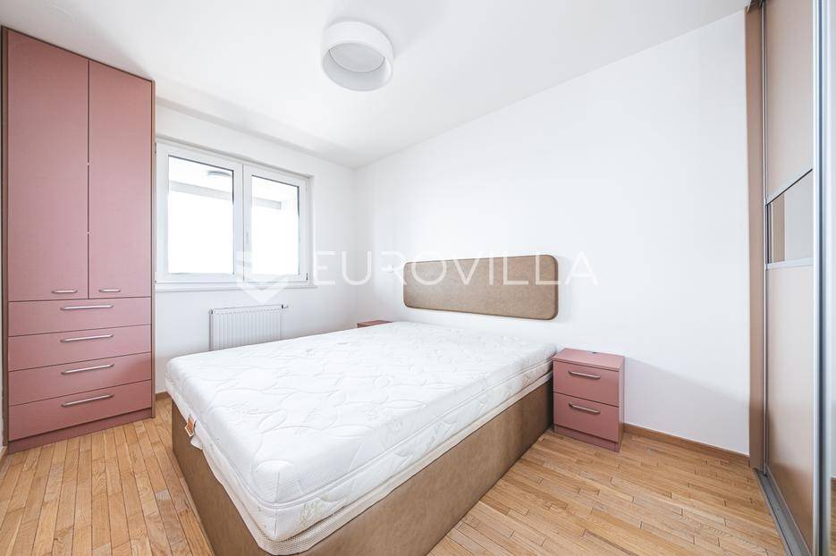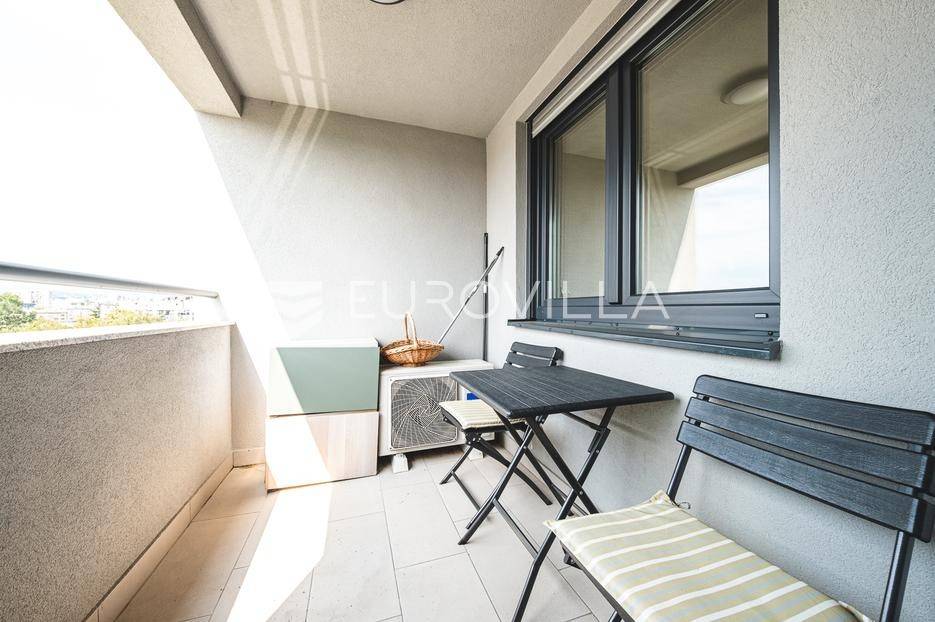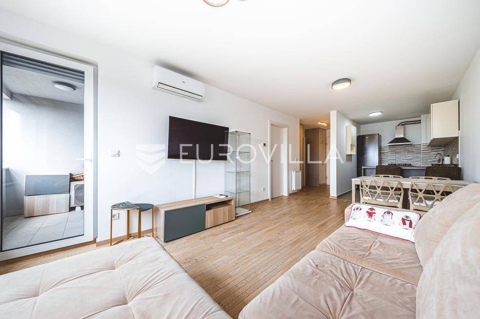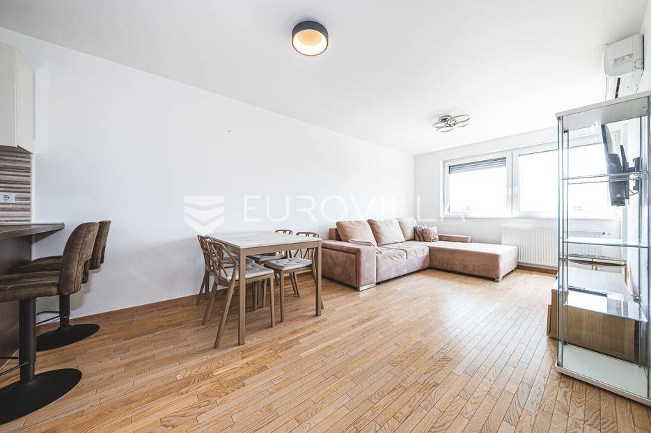 Zagreb, Borongaj, dvosobni stan na 6. katu stambene zgrade novije gradnje zatvorene površine 46 m2 s loggiom loggiom, spremištem I garažnim parking mjestom ukupni 53 m2. Sastoji se od ulaznog hodnika, dnevnog boravka s kuhinjom i blagovaonicom, spavaće sobe, kupaonice i loggie. Stan je potpuno namješten I uređen.