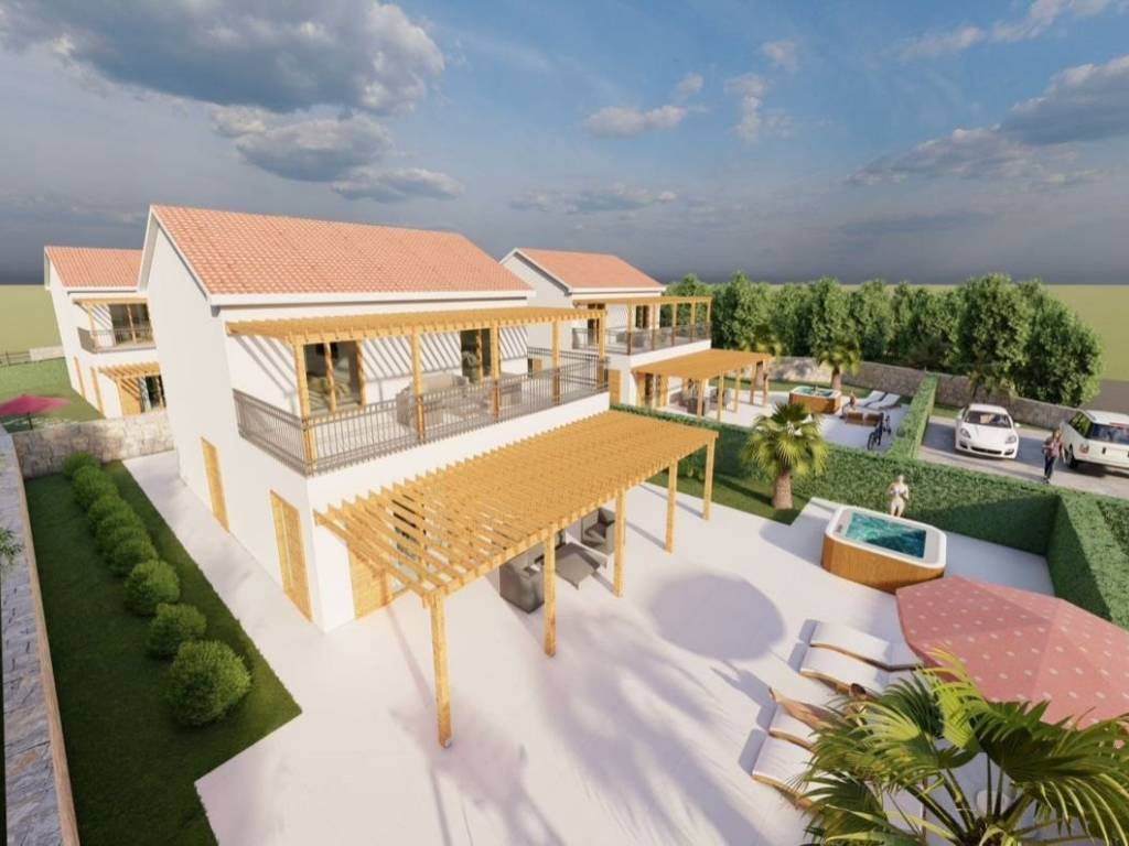 Otok Krk, Malinska, prodaja nove rustikalne vile površine 203,71 m2, s uređenom okućnicom od 520 m2, na mirnoj lokaciji, 2000 m od mora. Vila se sastoji od prizemlja s dnevnom sobom, kuhinjom, blagovaonom, spavaćom sobom, kupaonicom, toaletom, spremištem i terasom od 40 m2, te prvog kata s dvije spavaće sobe s privatnim kupaonicama, hodnikom i izlazom na terasu od 35,41 m2. Kvalitetna gradnja i oprema, vrhunske sanitarije, klimatizacija, instalacije za protuprovalne senzore, dva parkirna mjesta.