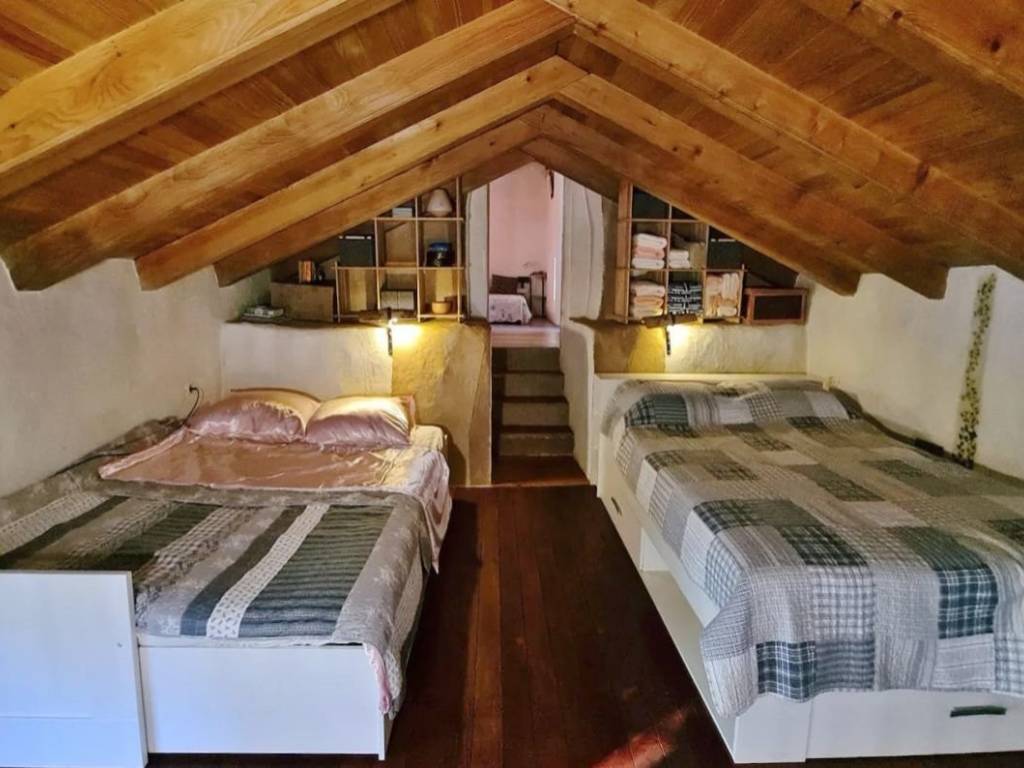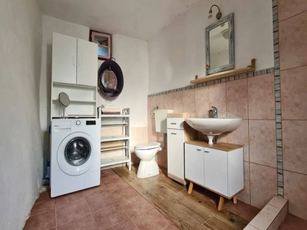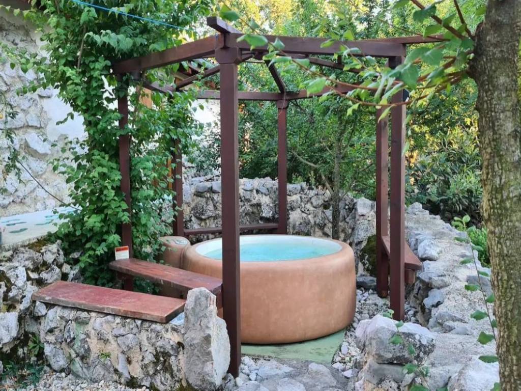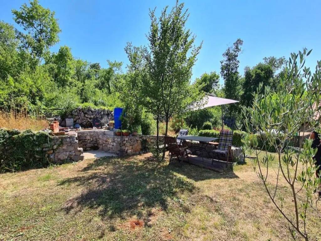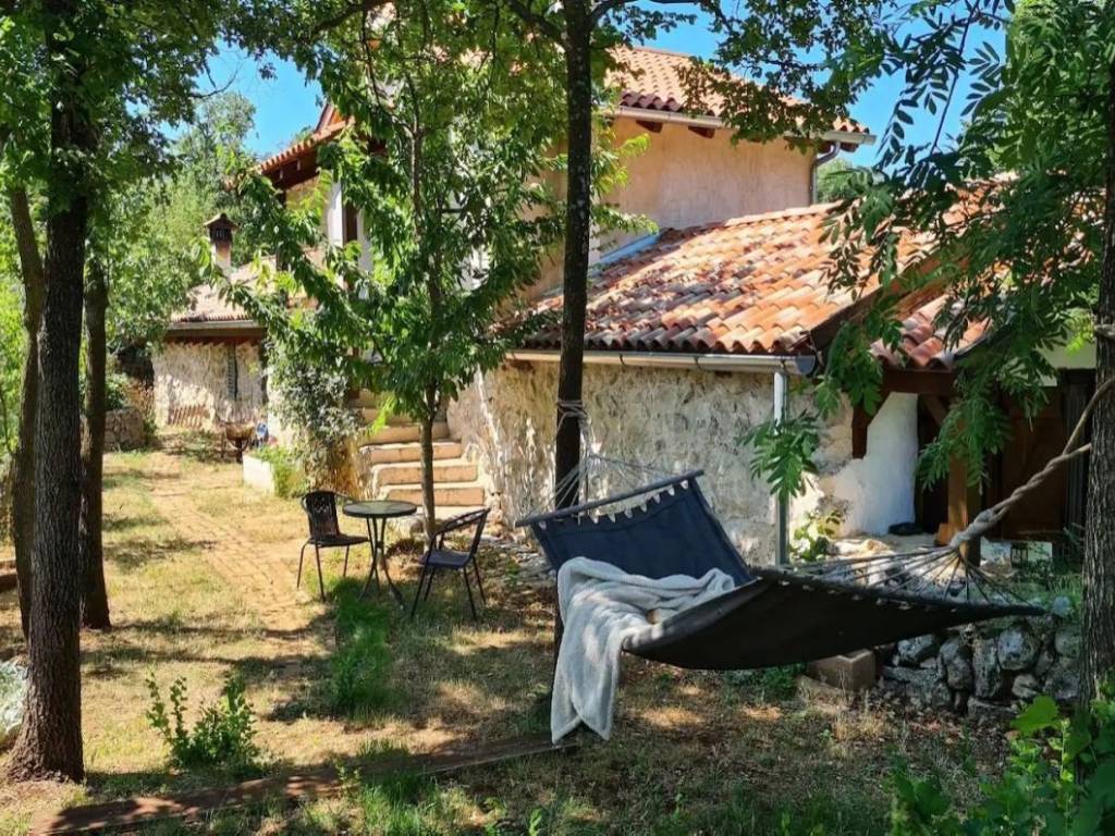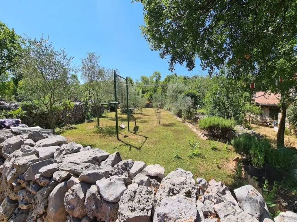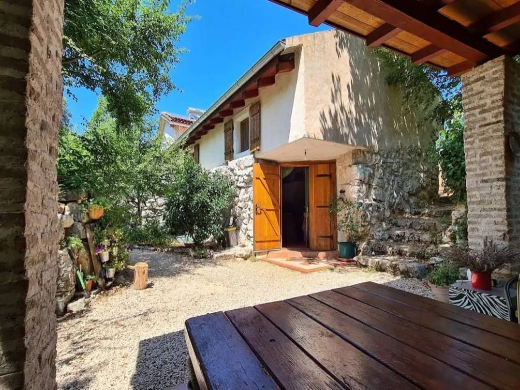 Otok Krk, Dobrinj, prodaja stare kamene kuće površine 100 m2, s prostranom okućnicom površine 1.310 m2, na mirnoj lokaciji, okružena šumom. Kuća se sastoji od prizemlja s dnevnom sobom, kuhinjom i blagovaonom te galerije s dvije spavaće sobe, kupaonicom, hodnikom te balkonom. Na prostranoj okućnici na lazi se vrtna kućica sa studio apartmanom i terasom. Jacuzzi, opskrba vode iz vlastite cisterne. Udaljenost od mora 5000 m.
