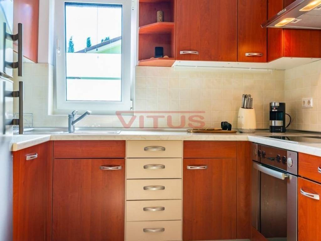 Two bedroom apartment of 62 m2 is located in a quiet surroundings of Malinska. The apartment is located on the second floor of a residential building and consists of an entrance hall, bathroom, living room with dining room, kitchen and two bedrooms. The living room opens onto a terrace with a beautiful, open view of the sea. There is a parking space in the garden of the building. The apartment is air conditioned and is sold fully equipped. Quiet location, 1500 m from the sea and the center of Malinska!