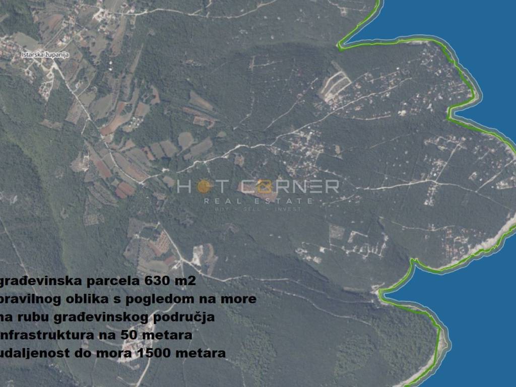 na udaljenosti 1500 metara do mora.Parcela je pravilnog oblika, te