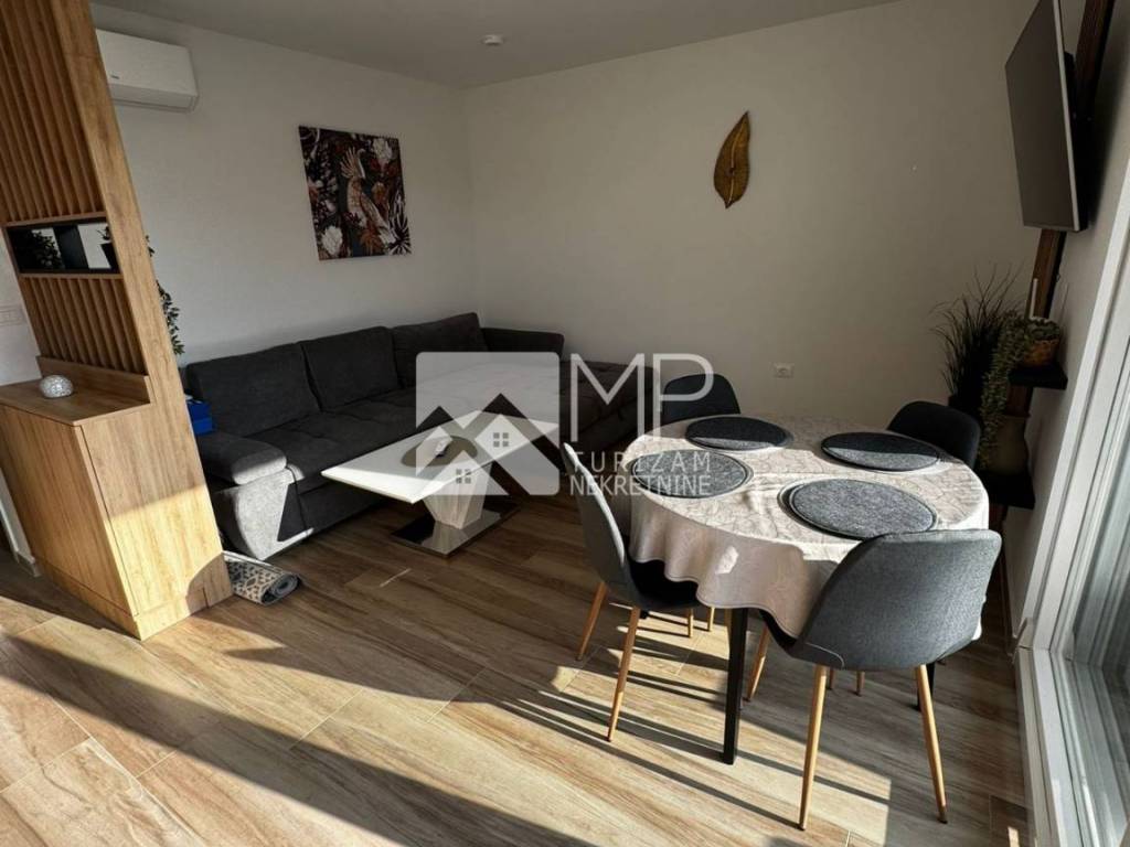 The apartment is part of a new building, and the final procedure for issuing a use permit is underway. The apartment is furnished, bright and functionally arranged, which makes it an excellent choice for a family, a couple or as an investment for tourist rental.