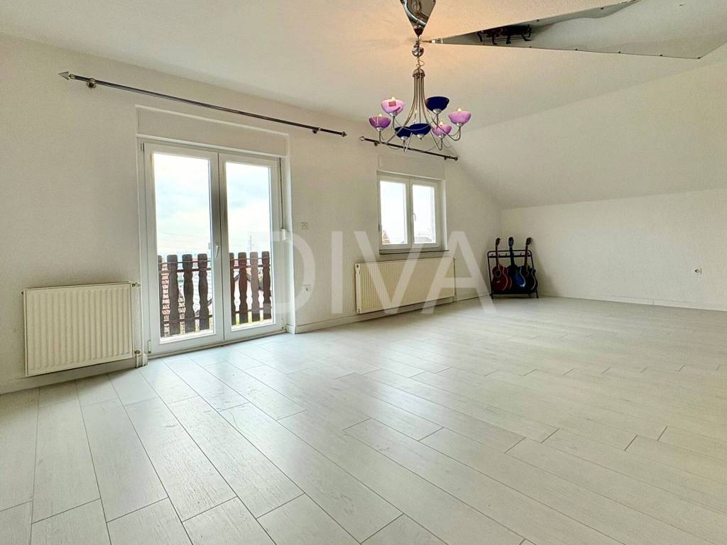 Potkrovlje prati isti raspored kao i prizemlje, veliki boravak sa blagovaonicom i kuhinjom, 2 spavaće sobe, kupatilo, hodnik i balkon.