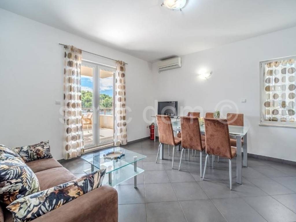 We are mediating in the sale of an apartment in the first row to the sea, in Milna on the island of Brac. This is an apartment placed on the first floor. The apartment has a net area of 48.70 m2. It consists of an open-concept kitchen with a dining room and living room, two bedrooms, a bathroom and a balcony - 14.70 m2, which offers a beautiful view of the sea and the town itself. In addition, the apartment also includes an outdoor parking space - 10.85 m2 and a yard of 14.20 m2. The apartment is air-conditioned and fully furnished. Ownership is neat.
