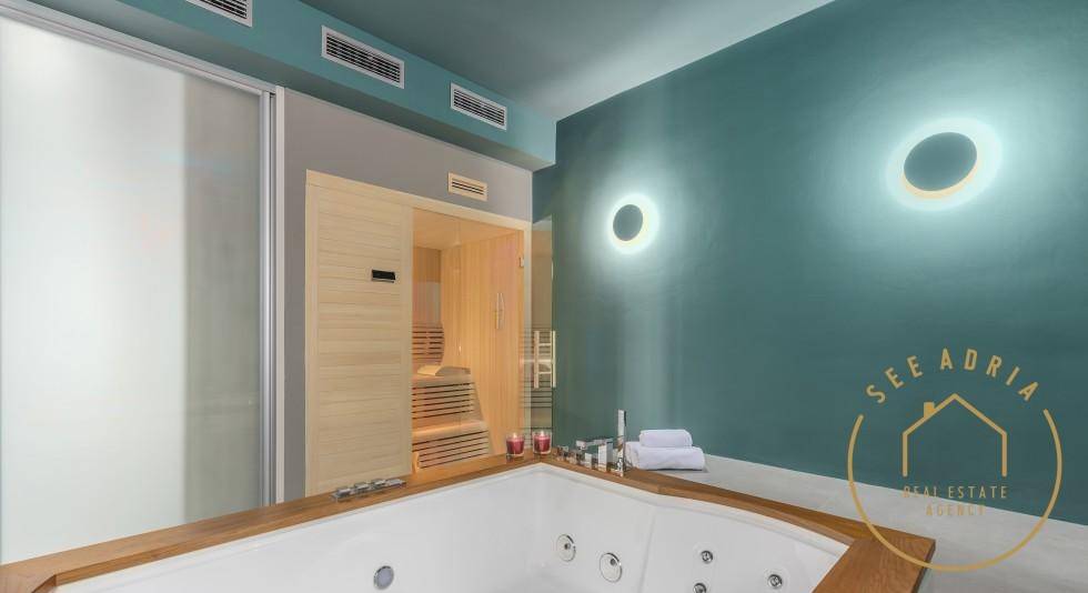 4 bathrooms, toilets, spa area, spacious terraces as well as roof terraces with spectacular views.