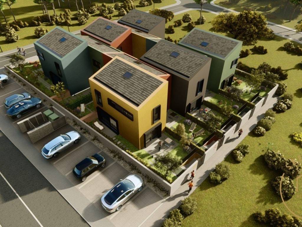 Each house consists of two floors and has an average of 65 square meters, with more or less square footage of the yard, depending on the location of the house. The size of the garden varies from 42 m 2 to 104 m 2, and the space is fenced. The interior is organized in such a way that the unique space of the kitchen, dining room and living room on the ground floor, with access to the terrace, while on the upper floor there are rooms. The larger bathroom is upstairs and the toilet is on the ground floor. Each house has one parking space with the possibility of adding more parking spaces.