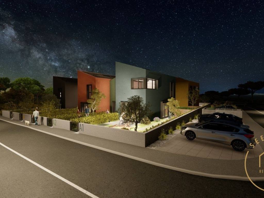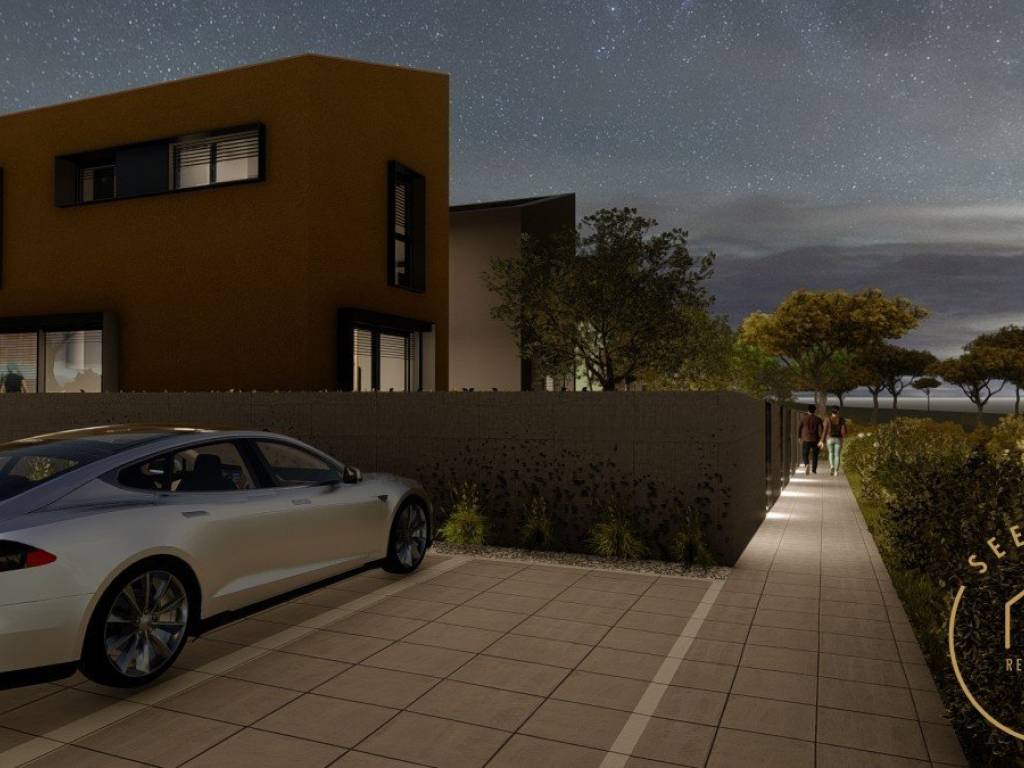 Ten houses in a row, five on each side, seem like a world unto themselves, and with a clever architectural solution allow for a high level of privacy with a warm sense of neighborhood. Each house has a garden and parking space, and six houses have sea views. The nearest beach is 950 m away and the center of Porec is 2 km away. The houses were literally created for enjoyment - enjoying with the family, enjoying with the children, enjoying the company with the barbecue, enjoying life.