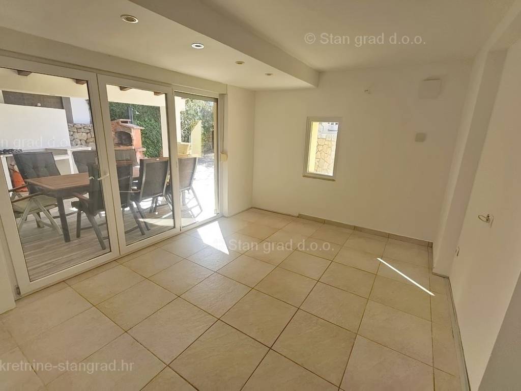 From the excellent offer of real estate in the agency Stan Grad Immobilien, a very nice apartment in the high-quality and desirable coastal Adriatic destination, the island of Krk, stands out. This apartment is located in a charming village in a prime location not far from the sea and the center of the town of Krk. According to the type of property, this is a medium-sized one-story apartment. In a building of very good construction, the apartment is positioned on the ground floor. The area of this apartment is a total of 62 m2. This area includes the living room and kitchen, 3 bedrooms, bathroom and terrace. The interior of the property is empty and completely free of previously used furniture. It is necessary to underline that the apartment is attached to the adjoining and well-decorated yard of approx. 140 m2 where there is a storage room, a shower and an outdoor kitchen. The owner of the apartment will have one parking space at his disposal. In addition to what has already been described, the apartment also provides a pleasant subjective feeling of being in the interior, which is enhanced by the attractive view of the coastal village and the wooded landscape. The apartment in question is owned by a physical obligation and upon transfer of ownership is subject to the calculation of real estate sales tax in the amount of 3%. The owner of the apartment guarantees a quick transfer of the right to dispose of the property to the buyer. Contact us with confidence at the address of the office on the island of Krk and we will be your partner for the safe purchase of real estate in Kvarner. In addition to the presentation of the real estate and its legal status and conducting negotiations with the seller of the real estate, our expert team will assist the buyer in transferring ownership of the apartment and transferring bills for electricity, water supply and utility services to his name.