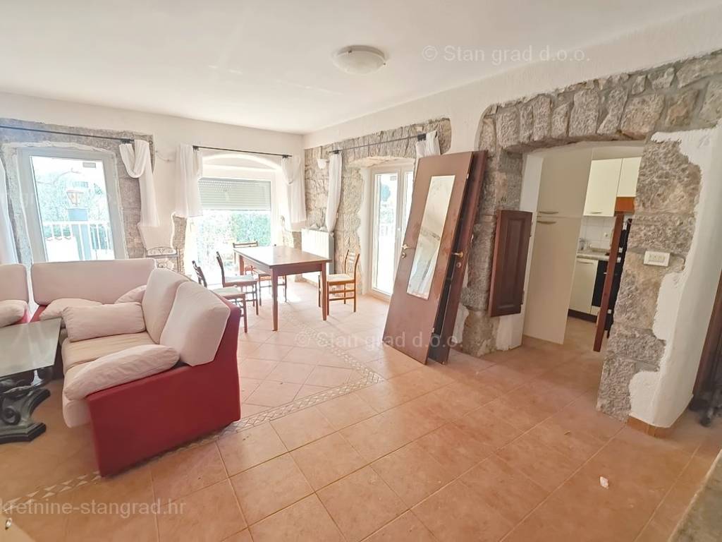 From the excellent offer of real estate in the agency Stan Grad Immobilien, a very nice apartment in the high-quality and desirable coastal Adriatic destination, the island of Krk, stands out. The mentioned apartment is located in the vicinity of the city of Krk, in a quiet position, a little away from the traffic jam, but well connected by traffic to the center of the city of Krk and the coast. In nature, it is a comfortable and medium-sized one-story apartment with a good arrangement of rooms. Within a very beautiful building, the apartment is located on the ground floor. The total area of ​​this apartment is 85 m2. This area includes the entrance hall, living room and kitchen, 2 bedrooms, bathroom and 3 terraces. The interior of the property is very well maintained and fully equipped with all necessary technical devices and quality furniture. The ownership of this apartment also includes the possibility of using the common part of the yard of the building in question, where there is a swimming pool and a sunbathing area. This apartment is owned by a parking space for parking two cars. In addition to the previously mentioned properties, this apartment has a view of the landscaped surroundings and the natural landscape. This apartment is owned by a natural person, so the buyer is obliged to pay sales tax in the amount of 3% when transferring its ownership to his name. The owner of the property guarantees the orderliness of the relevant ownership documents and the possibility of a quick transfer of ownership of the apartment to the buyer. Our staff will make sure that you feel at home in Kvarner. Visit us on the island of Krk. The sales team of the Stan Grad Immobilien agency will be happy to assist the buyer of this property in transferring ownership of the property to the land register and transferring bills for electricity, water and garbage collection to their name.