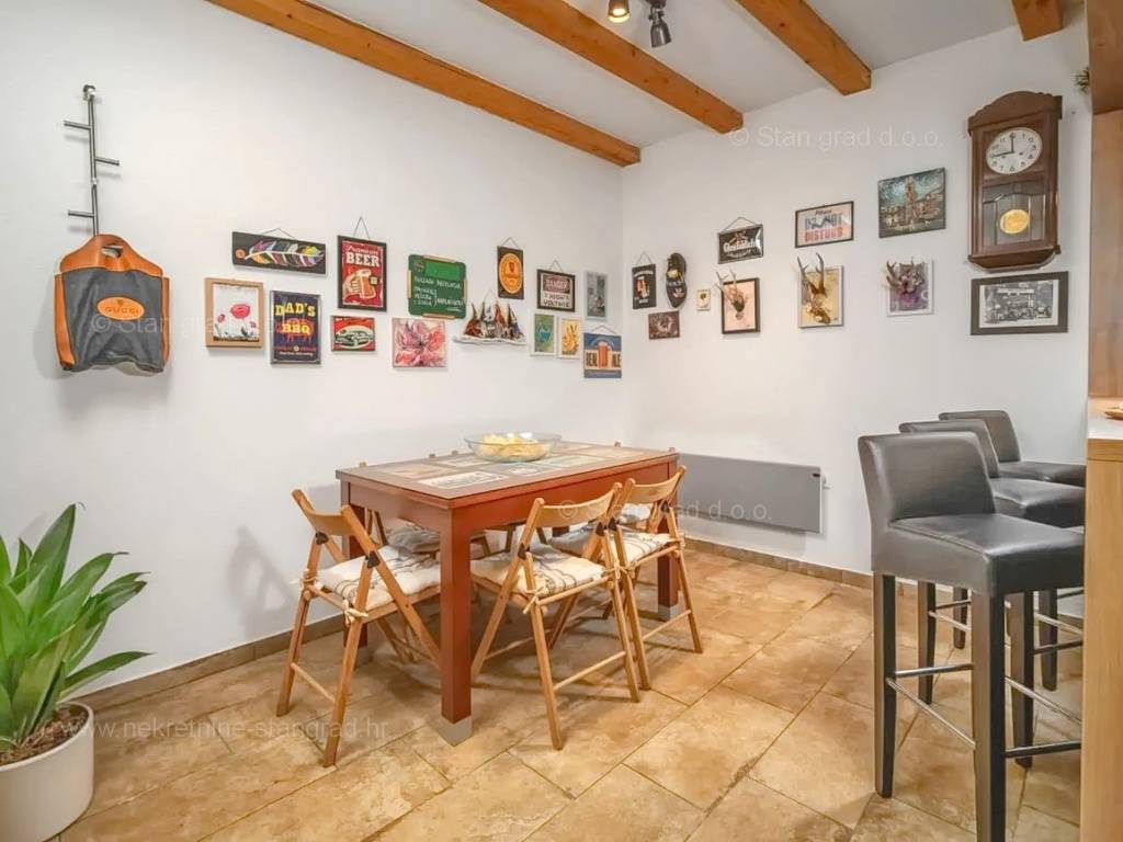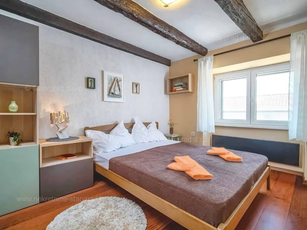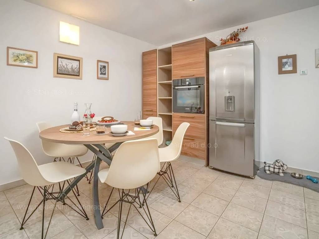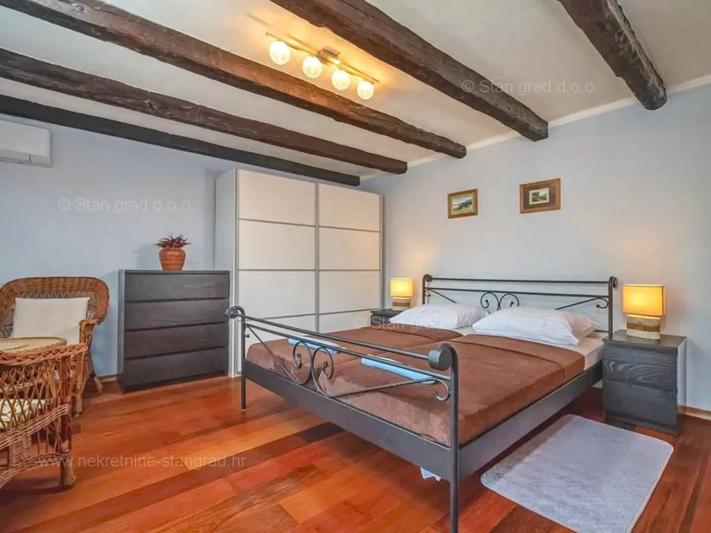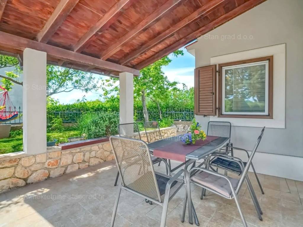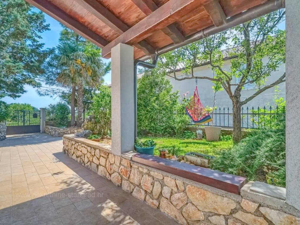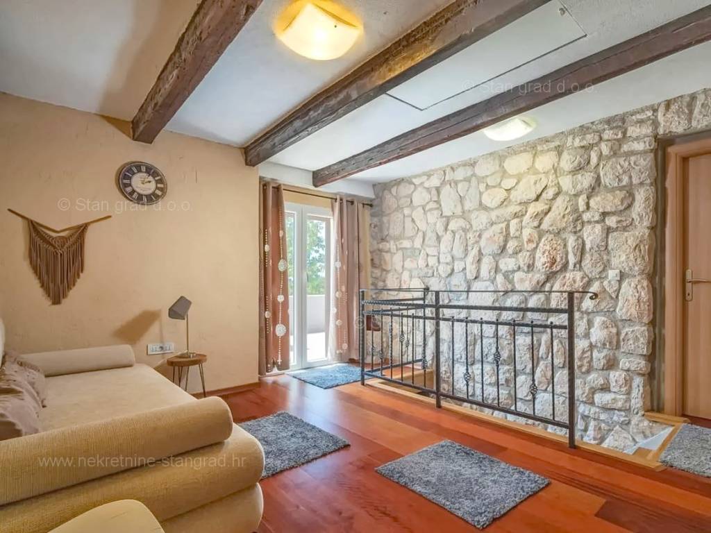 Our agency offers a fully furnished stone house for sale in the super attractive northern Adriatic area of the island of Krk, in Kvarner, which provides the perfect atmosphere for spending holidays or living. This interesting property is in a good location in the vicinity of Dobrinj. Structurally, this is a semi-detached house. The impeccably constructed property consists of a total of 2 floors. The structure of the space provides for the residence of one family. The charming house occupies a total area of 169 m2. The mentioned area contains a living room and kitchen with dining room, 2 bedrooms, bathroom, social room and terrace. Attached to the described house is a well-organized garden of 400 m2, ideal for relaxing and spending free time. The property includes 4 parking spaces and a furnished storage room of 20 m2, which are located across the road. The spacious garden of the described property is arranged for comfortable parking of several vehicles. In addition to the above, it should be noted that the house has a beautiful view of this coastal town. This property is owned by a natural person and upon its transfer, the buyer of the house is obliged to pay a 3% real estate transfer tax. The owner of the property guarantees the orderliness of the relevant ownership documents and the possibility of a quick transfer of ownership of the house to the buyer. Our staff will make sure that you feel at home in Kvarner. Visit us on the island of Krk. If you decide to choose us, the expert team of the Stan Grad Immobilien brokerage office will be happy to help you transfer ownership of the property and the utility bills to your name.