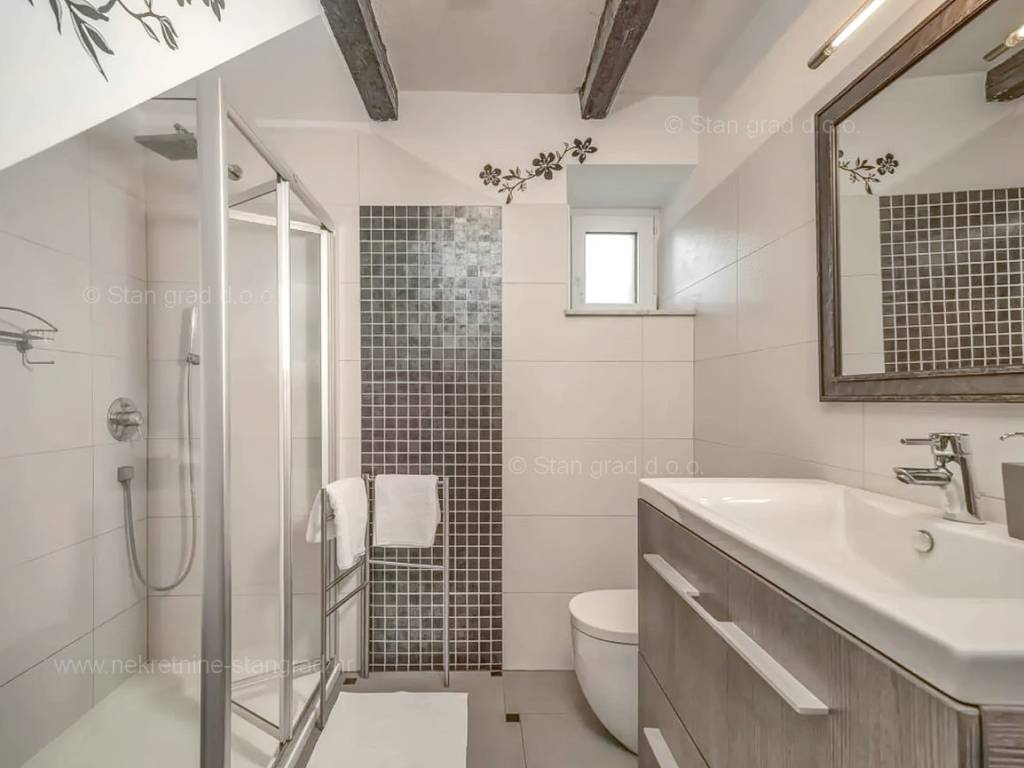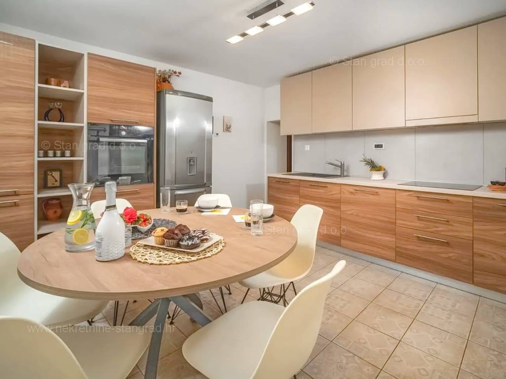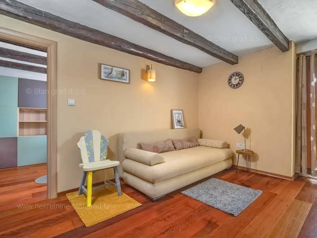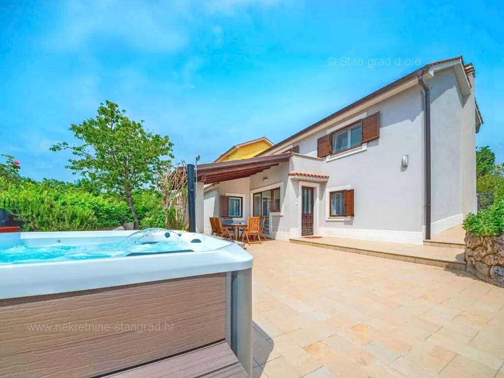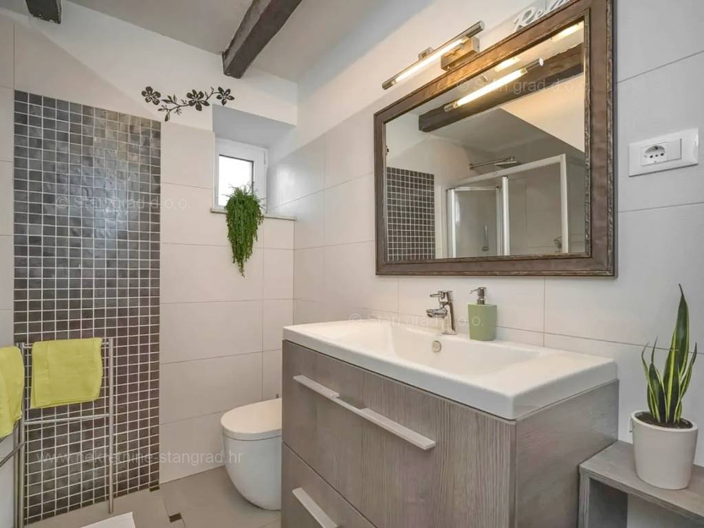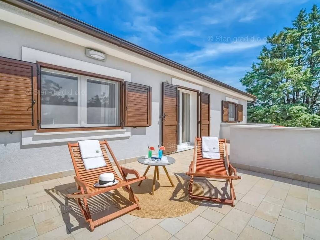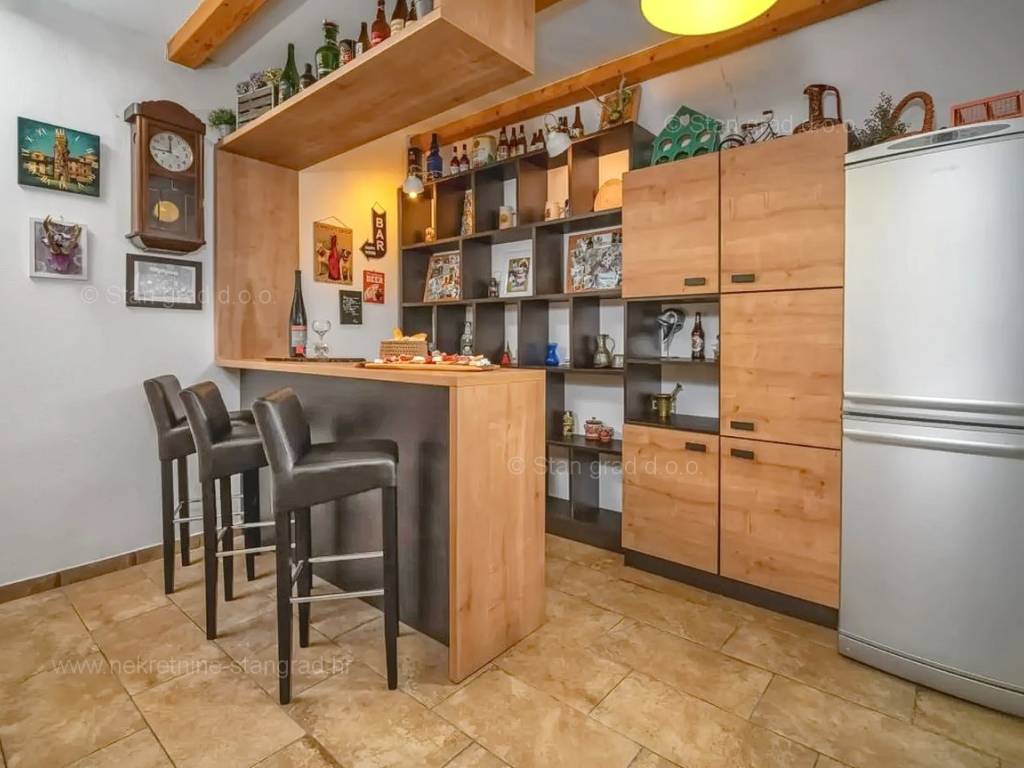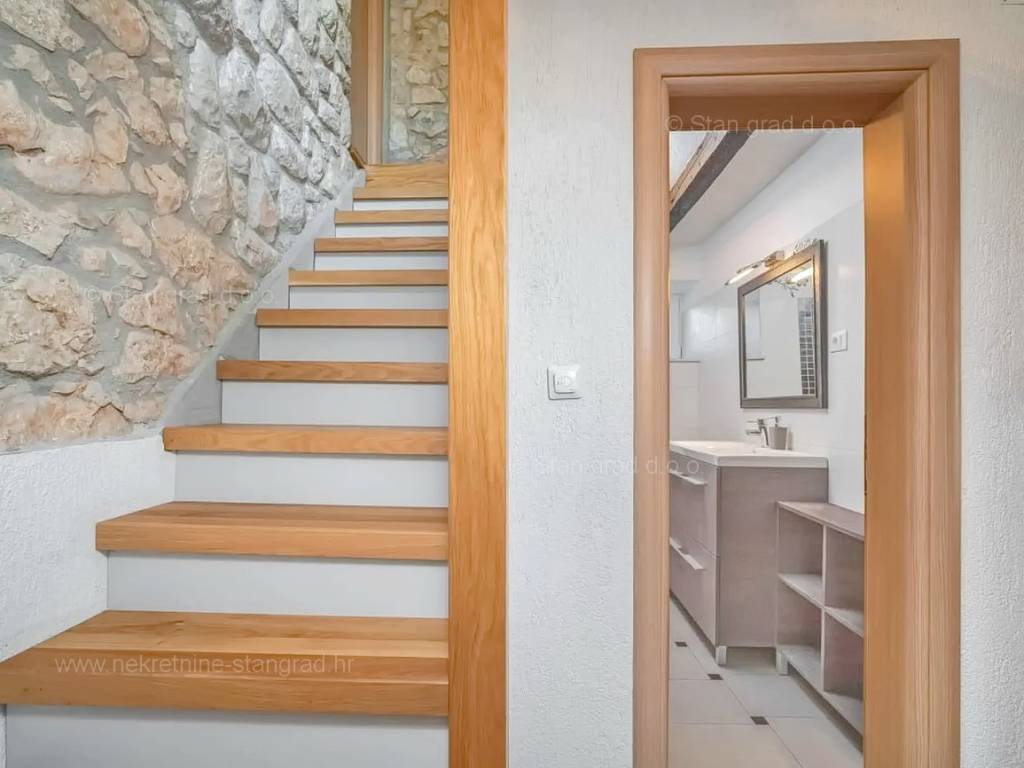 Our agency offers a fully furnished stone house for sale in the super attractive northern Adriatic area of the island of Krk, in Kvarner, which provides the perfect atmosphere for spending holidays or living. This interesting property is in a good location in the vicinity of Dobrinj. Structurally, this is a semi-detached house. The impeccably constructed property consists of a total of 2 floors. The structure of the space provides for the residence of one family. The charming house occupies a total area of 169 m2. The mentioned area contains a living room and kitchen with dining room, 2 bedrooms, bathroom, social room and terrace. Attached to the described house is a well-organized garden of 400 m2, ideal for relaxing and spending free time. The property includes 4 parking spaces and a furnished storage room of 20 m2, which are located across the road. The spacious garden of the described property is arranged for comfortable parking of several vehicles. In addition to the above, it should be noted that the house has a beautiful view of this coastal town. This property is owned by a natural person and upon its transfer, the buyer of the house is obliged to pay a 3% real estate transfer tax. The owner of the property guarantees the orderliness of the relevant ownership documents and the possibility of a quick transfer of ownership of the house to the buyer. Our staff will make sure that you feel at home in Kvarner. Visit us on the island of Krk. If you decide to choose us, the expert team of the Stan Grad Immobilien brokerage office will be happy to help you transfer ownership of the property and the utility bills to your name.