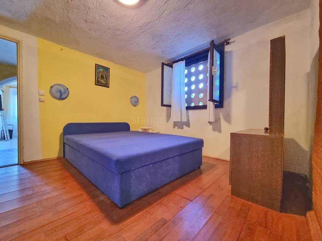 The total area of the house is 166 square meters. The ground floor features two apartments. The first apartment has 40 square meters and consists of a kitchen, living room, bedroom, and bathroom, with the additional option of converting an old water cistern into another room. The second apartment, measuring 30 square meters, includes a bedroom, living room, kitchen, and a small bathroom.