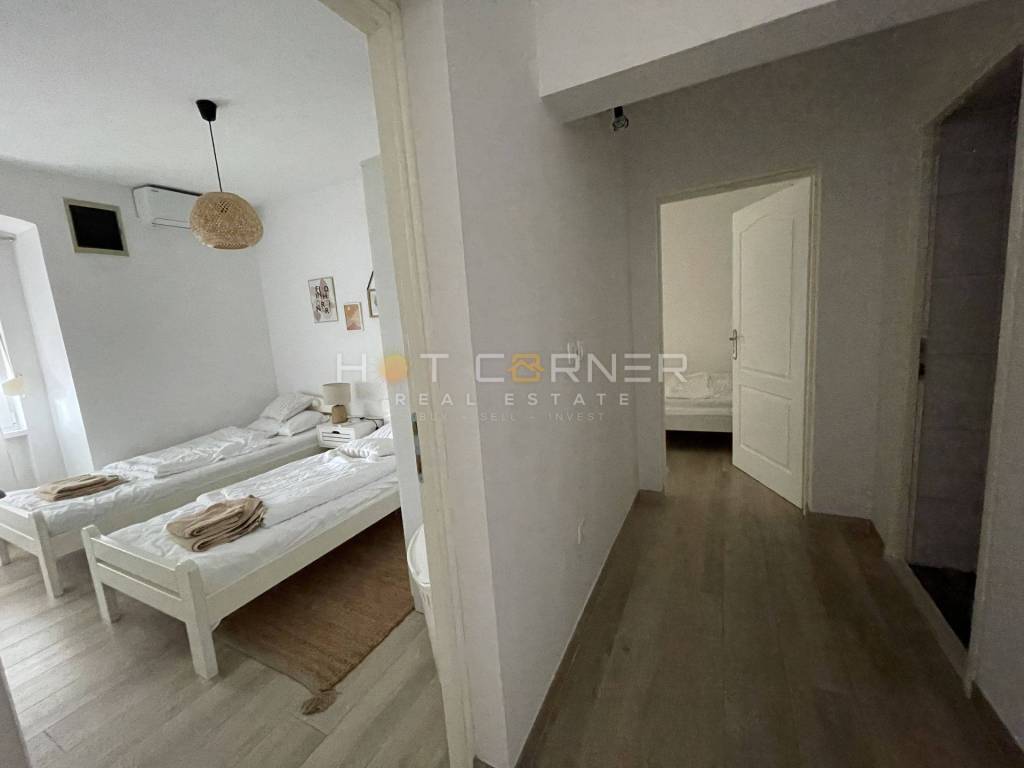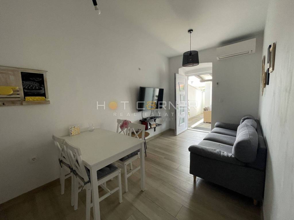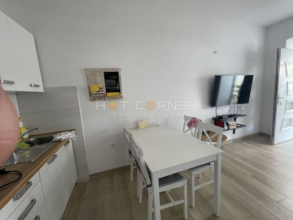 The apartment is located close to all amenities including shops, shopping center, restaurants, schools, kindergartens, bus stations, etc. The distance from the sea and beaches is about 5 minutes by car. The apartment was completely renovated in 2023 (electricity and water installations, walls, floors, furniture, etc.). Heating and cooling are done with an inverter air conditioner. The apartment has about 50m2 of landscaped and fenced yard, and there is a parking space within the yard of the building in the possession of the apartment owner. The apartment is sold fully furnished.