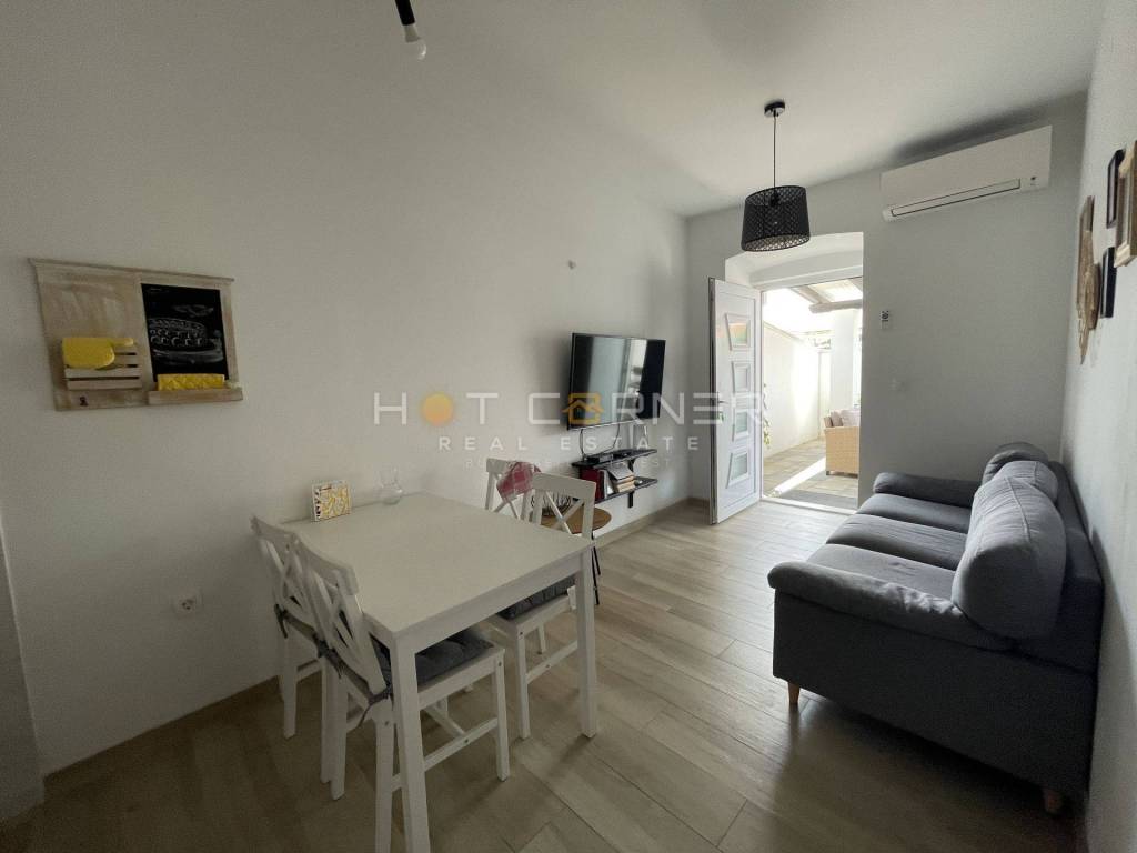 A beautiful furnished apartment for sale in Busoler in Pula. The total area of ​​the apartment is 41 m², and consists of an entrance hall, bathroom, open space kitchen/living room/dining room, two bedrooms, and a spacious yard of about 50m2 which also has a large covered terrace, and parking spaces within the building's yard.