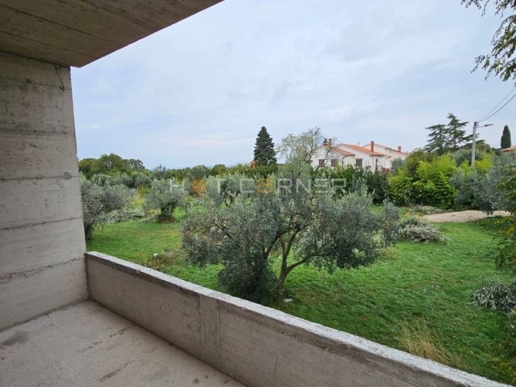 For sale is a beautiful, modernly designed apartment in a new building with a surface area of 57.69 m², located on the first floor. It consists of two comfortable bedrooms, a bathroom, hallway, and a spacious open-space living room with kitchen and dining area, ideal for relaxation and socializing. The apartment offers a wonderful view of lush olive groves, the sea, Fažana, and Brijuni islands. The price includes one parking space and a storage room.