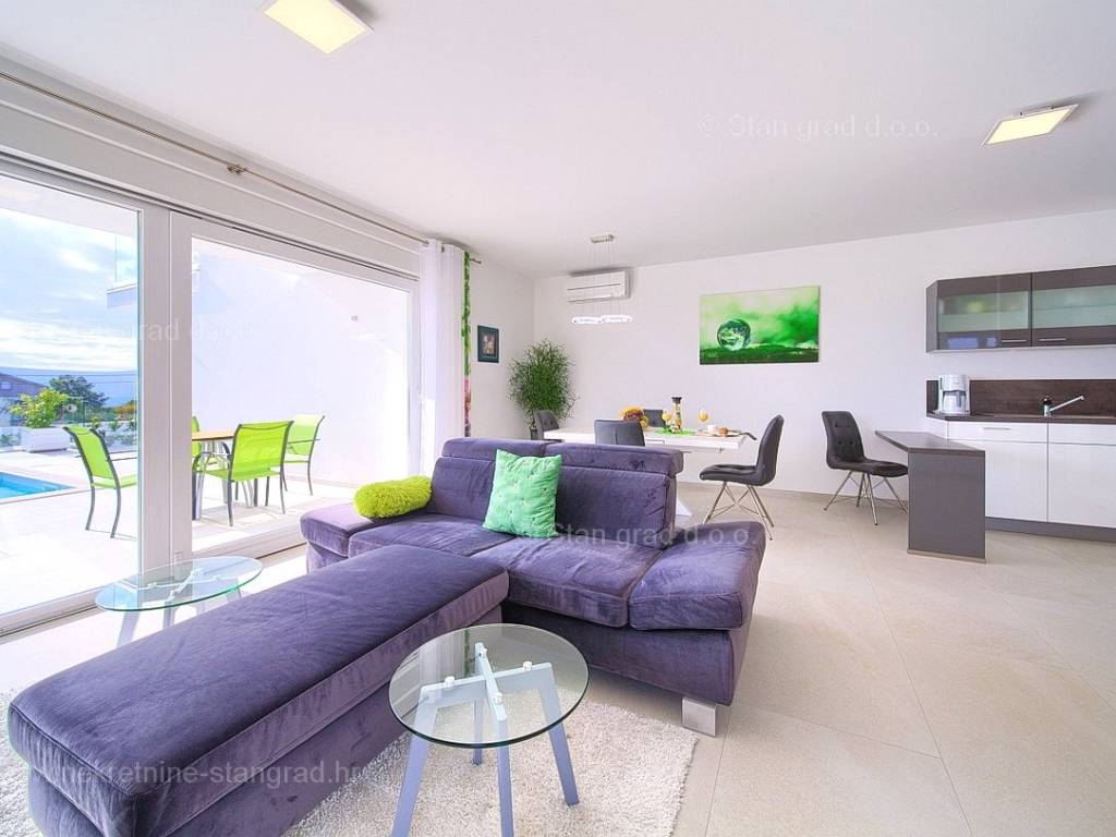 From the wide range of real estate in the northern Adriatic at the agency Stan Grad Immobilien, a very luxurious apartment in the attractive tourist region of the island of Krk stands out. This apartment was built in a well-urbanized and gentle coastal settlement near the town of Krk. In nature, it is a very spacious and comfortable one-story apartment. Within the framework of a modernly designed building, the apartment extends over the ground floor. The total area of this apartment is 78 m2. On the mentioned surface there is a living room and a kitchen, 2 bedrooms, 2 bathrooms and a terrace. The interior of the property is fully equipped with new, high-quality technical devices and uniquely designed furniture. The mentioned apartment has a storage room in the basement of approx. 15 m2. It should be noted that the added value of the apartment is given by the adjoining garden with a swimming pool and sun deck. Two cars can be comfortably parked in the adjoining part of the garden of the described property. In addition to the mentioned features, this apartment is very well oriented and offers a beautiful view of the sea and the coast. The apartment in question is owned by a physical obligation and upon transfer of ownership is subject to the calculation of real estate sales tax in the amount of 3%. The seller of the apartment guarantees proper ownership documents and the possibility of quick registration of ownership of the property in question to the buyer in the land register. We sincerely look forward to your call or personal visit to our office on the island of Krk. The expert team of our agents will be happy to help you during the process of registering ownership and transferring utility connections to your name.