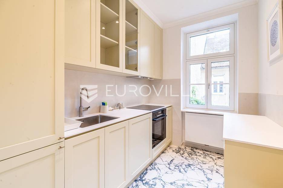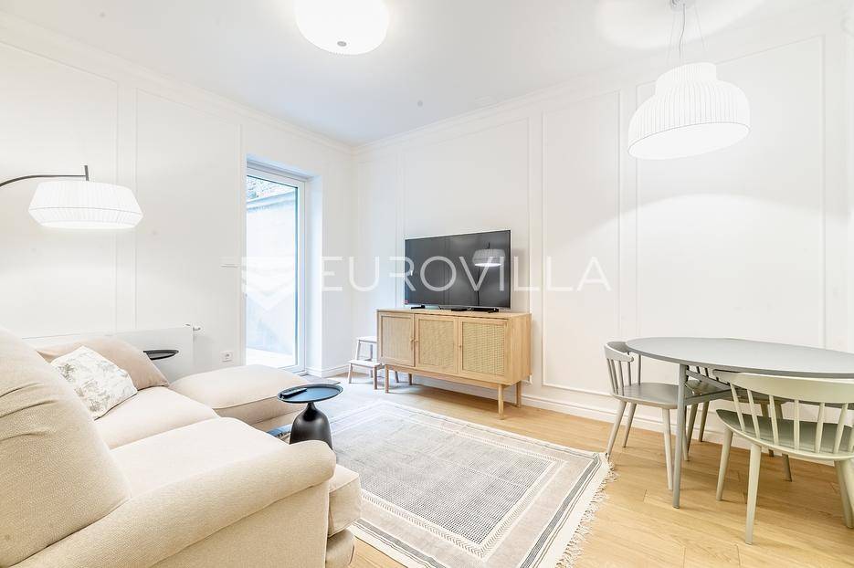 Zagreb, Centar, Ilica kompletno preuređen i moderno namješten dvosoban stan s vrtom i terasom, površine 60 m2 na 1. katu dvorišne zgrade. Prvi najam!Sastoji se od ulaznog prostora, dnevnog boravka s blagovaonicom i izlazom na terasu i zajednički vrt, opremljene kuhinje (Bosch aparati, indukcijska ploča, pećnica, perilica suđa), spavaće sobe s pogledom na zelenilo, kupaonice s tušem i podnim grijanjem te vešeraja (Miele sušilica/perilica). Nova drvena stolarija, električni podizači roleta, etažno plinsko grijanje, klimatiziran, orijentiran sjever-jug.Izuzetno ugodan i svijetao stan u strogom centru grada, u mirnoj dvorišnoj zgradi, u blizini svih trgovina, škola, tramvaja i ostalih bitnih sadržaja.Iznajmljuje se na duže razdoblje od minimalno 2 godine, nisu dozvoljeni kućni ljubimci ni pušaći.Za sve ostale upite nas slobodno kontaktirajte.