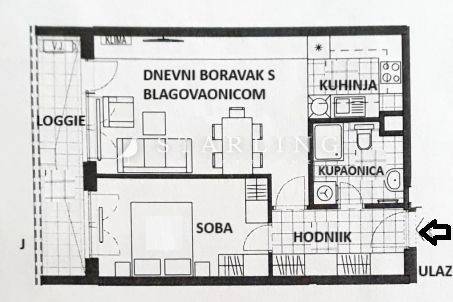 Prostor se sastoji od dvije prostorije, kupaonice, hodnika i lođe.