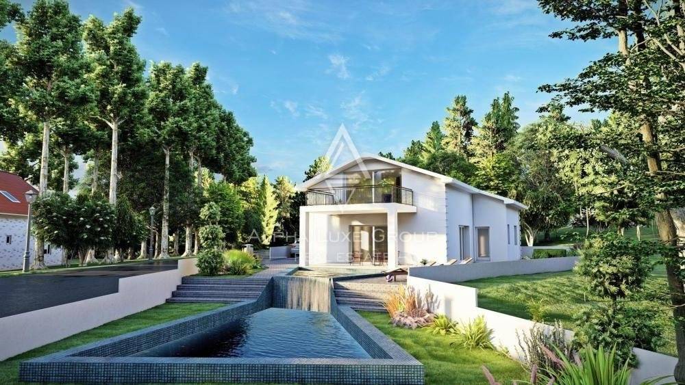 The house is distinguished by its quality of construction, in addition to its convenient position. The house has a living area of 194 m2 on a land space of 443 m2, which features a stone-covered portion and is decorated in neutral hues with an attractive and basic design that blends perfectly with the surrounding landscape.