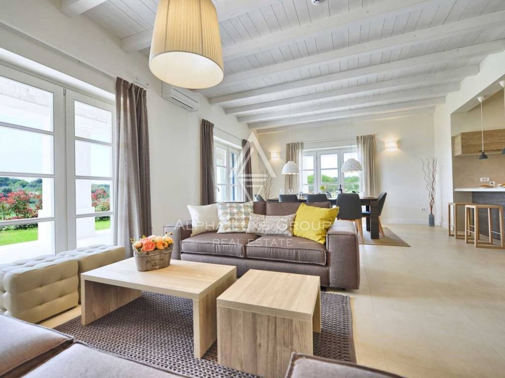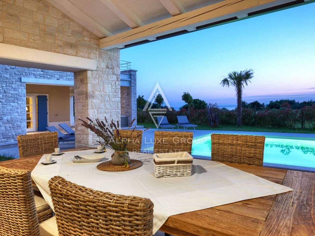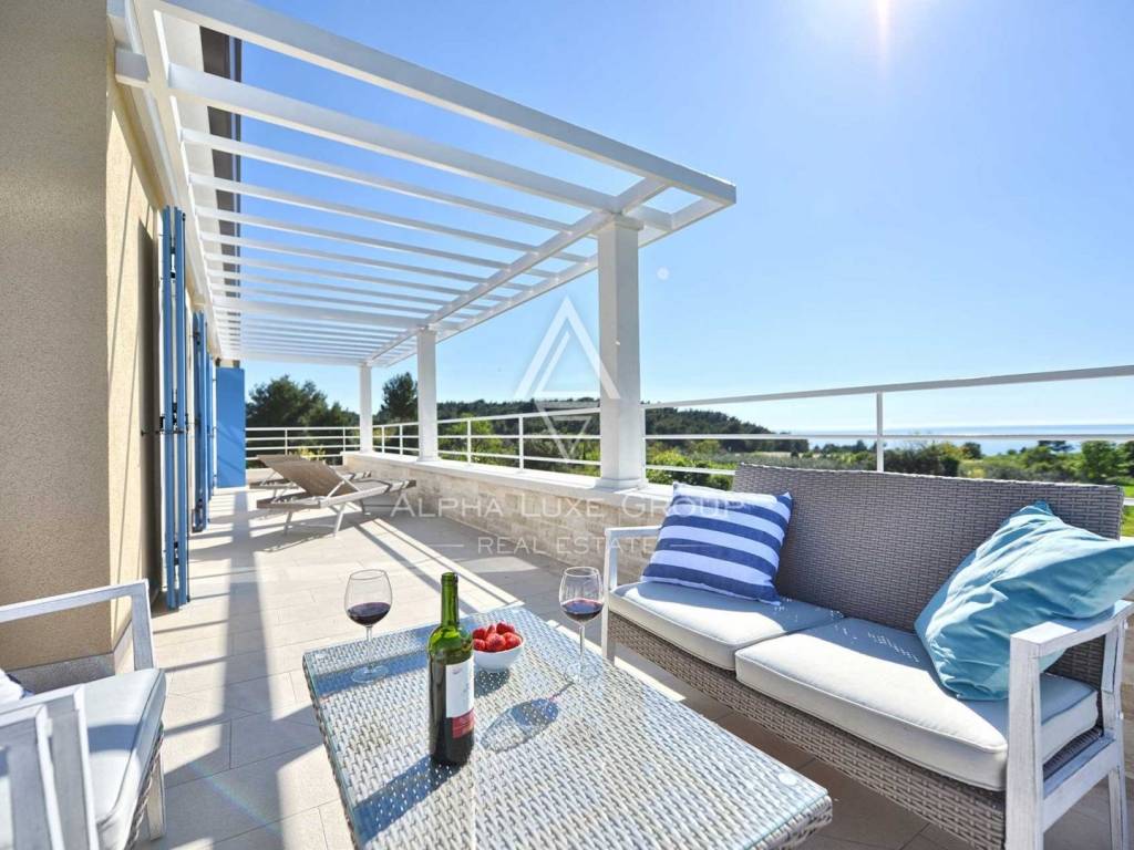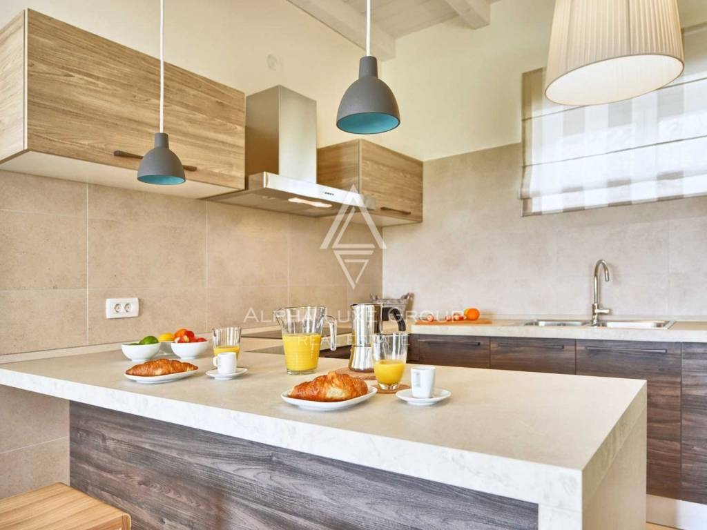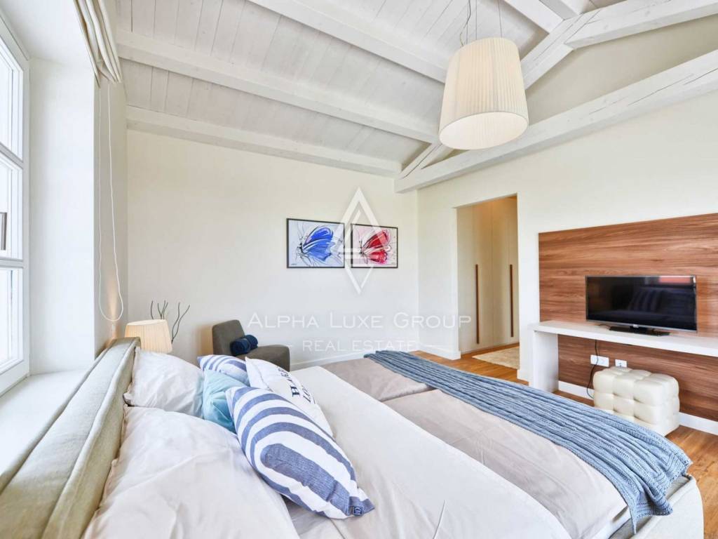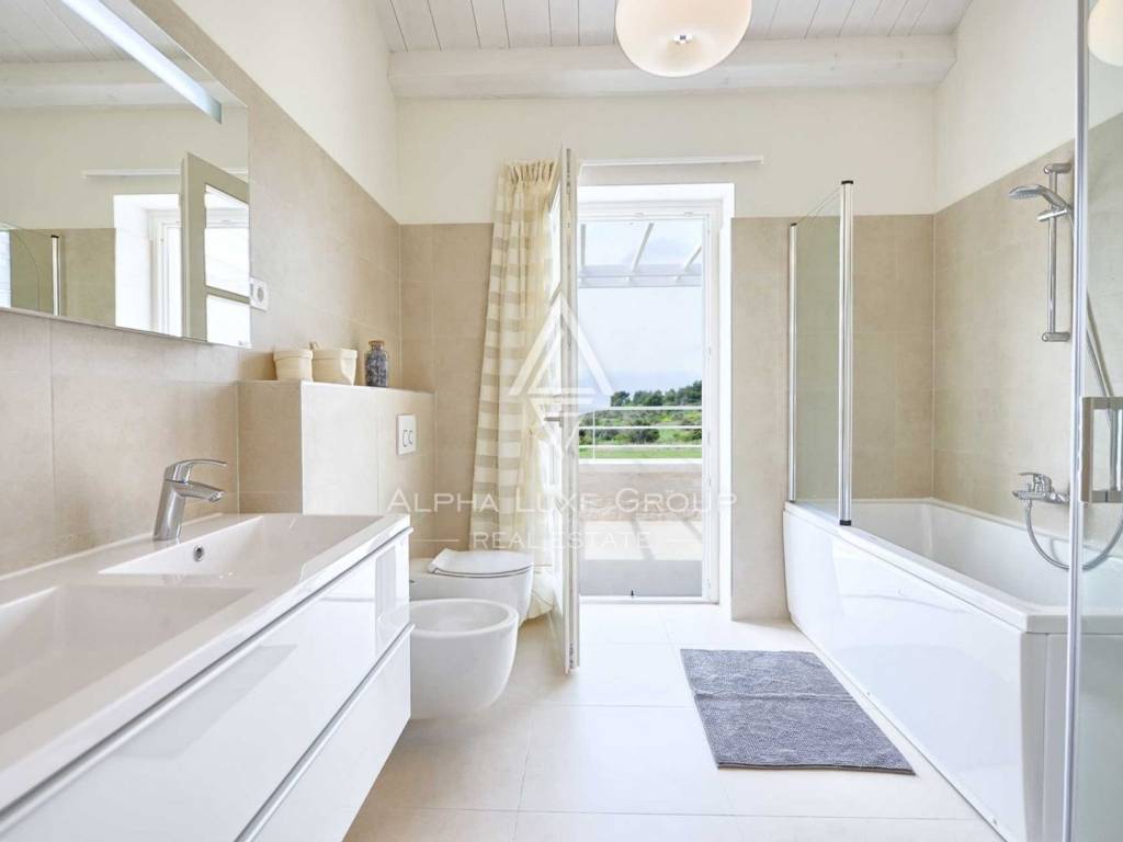 The top floor includes three bedrooms with three bathrooms and a terrace overlooking the sea, all of which are accessible via interior stairs. The air conditioning in each room is made-in, while the bathrooms get underfloor heating. The entire villa is composed of the highest quality materials.