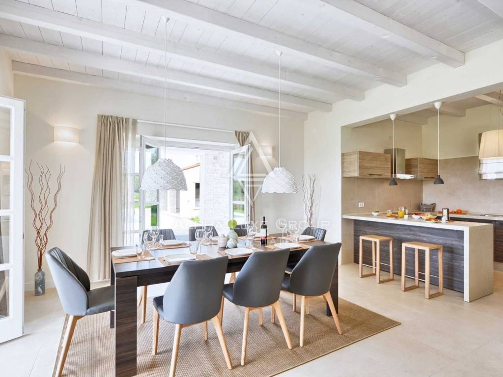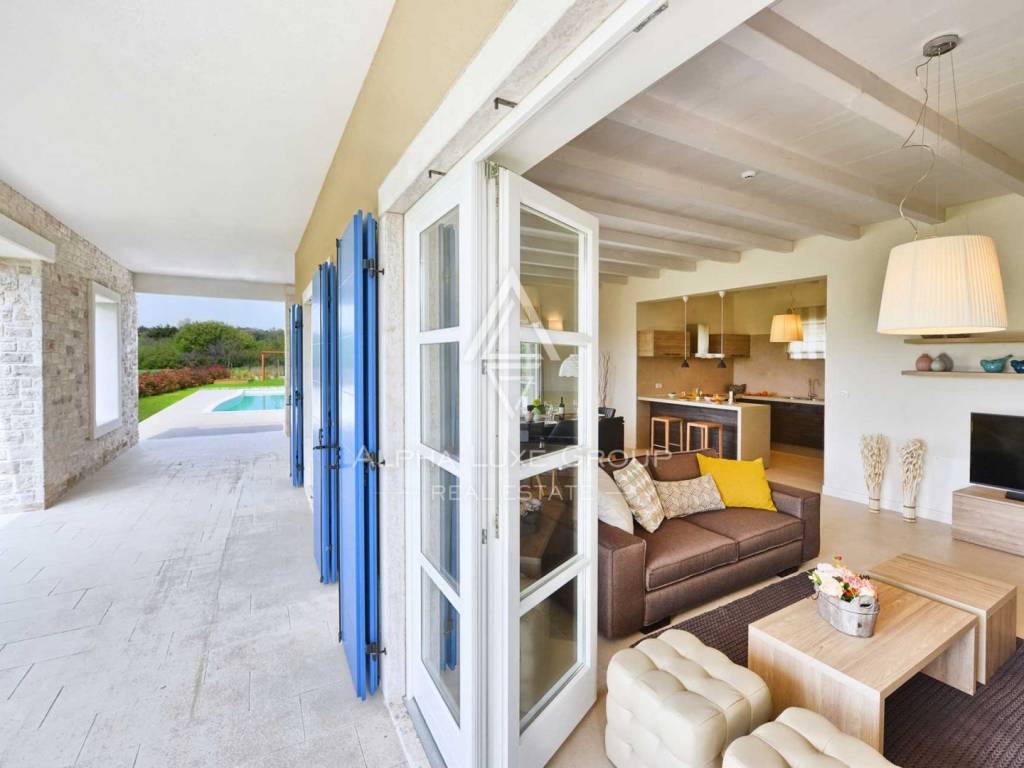 This modern villa is available for sale fully furnished with a swimming pool that has been built only 300 meters from the closest beach. The property is split into two sections: the main and the secondary structures. The villa is split into three floors: the basement, the ground floor, and the top floor. A sauna with a shower can be found in the basement.