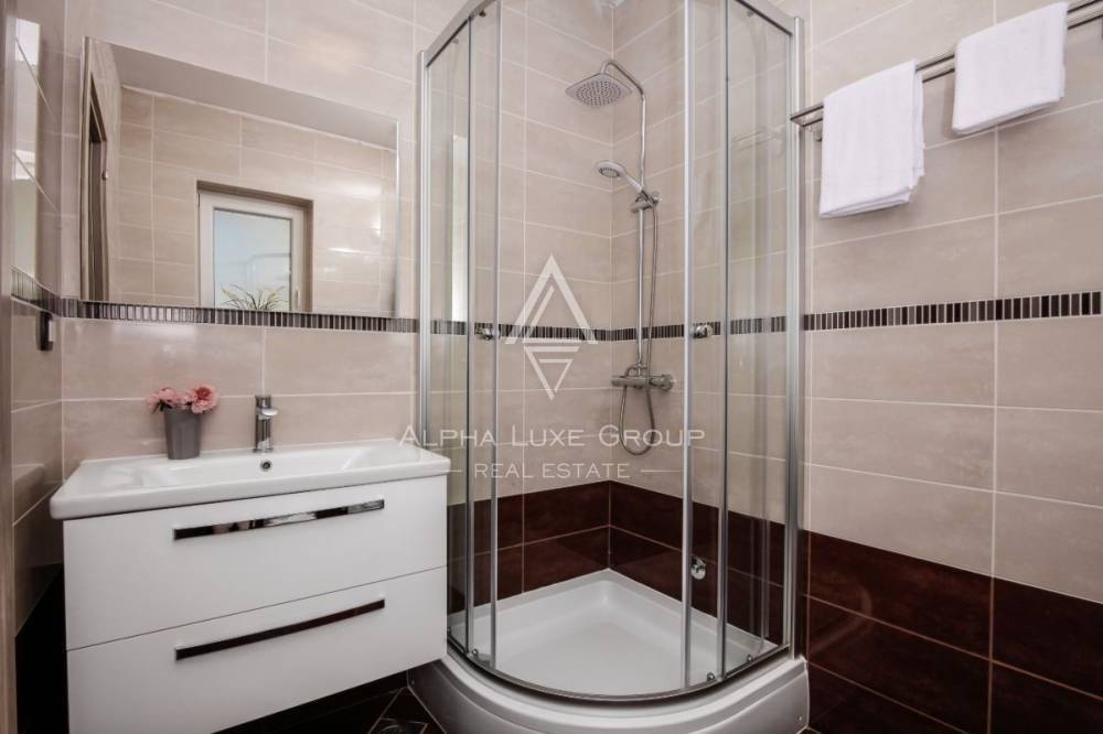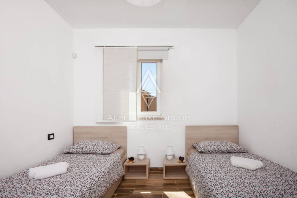 This residence with a swimming pool is located in a peaceful community near Labin. The house has a living area of 152m2 and 790 m2 of garden space. It has four bedrooms, two bathrooms, a fully equipped kitchen, dining room, and living room with access to an open covered terrace and pool of 28m2. It is made up of a ground floor and first level.