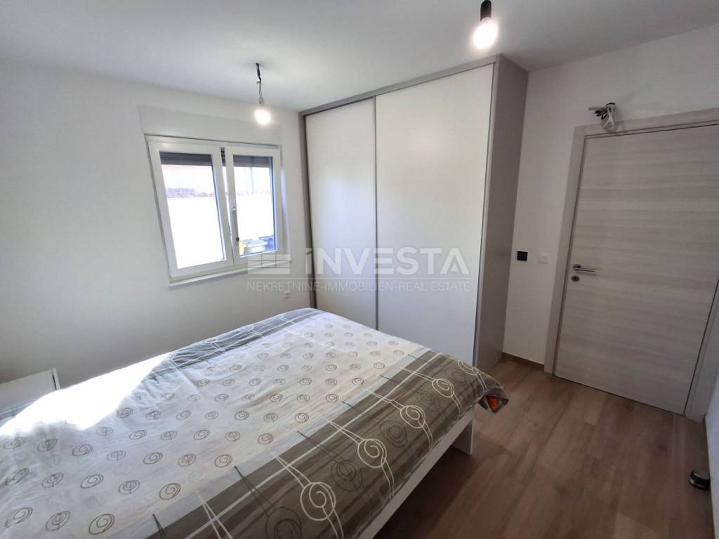 Upon entering the house, you arrive at a hallway with a large built-in wardrobe on the right and a smaller room with a bathroom on the left. Moving through the hallway, the first bedroom is located sequentially on the right. Following the bedroom is the second bathroom, then a larger and a smaller bedroom. On the left side of the hallway, there is a small storage room, leading into a large open space that includes a kitchen, dining area, and living room. From this area, there are two exits to a sunny and spacious terrace that offers a stunning sea view and the opportunity to enjoy the large yard, currently consisting of the mentioned garden and lawn (which can be enhanced with additional amenities or a swimming pool). In the hallway, there is also a small access hatch with aluminum ladders leading to the attic, which can serve as extra storage space.