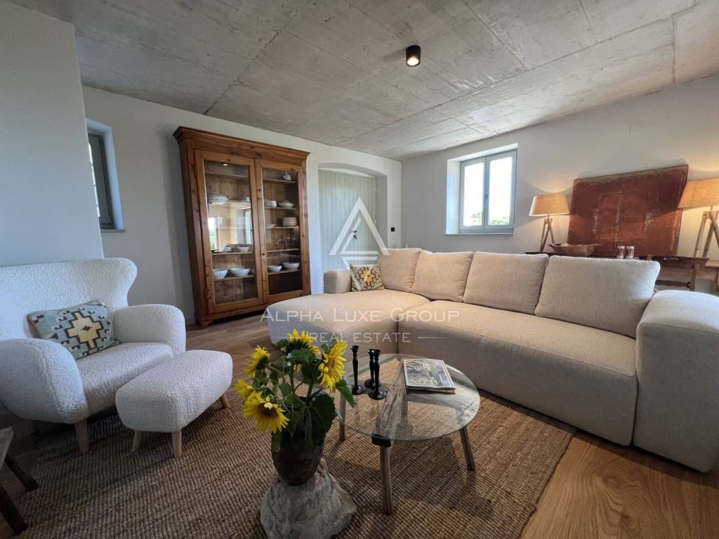 ALPHA LUXE GROUP is selling a beautifully renovated semi-detached house in Buje with a panoramic view of the sea.