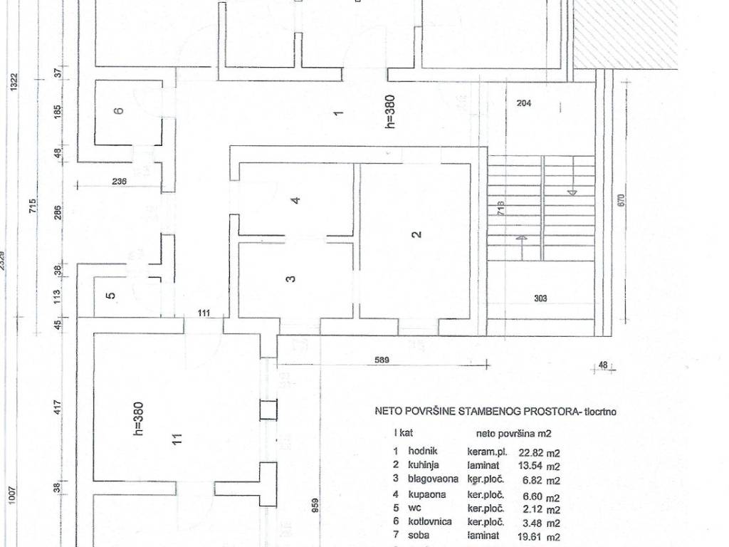 NEKRETNINU čini stan površine 180 m2, tavanski prostor površine 90 m2 i podrumski prostor površine 40 m2.
