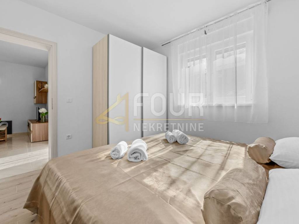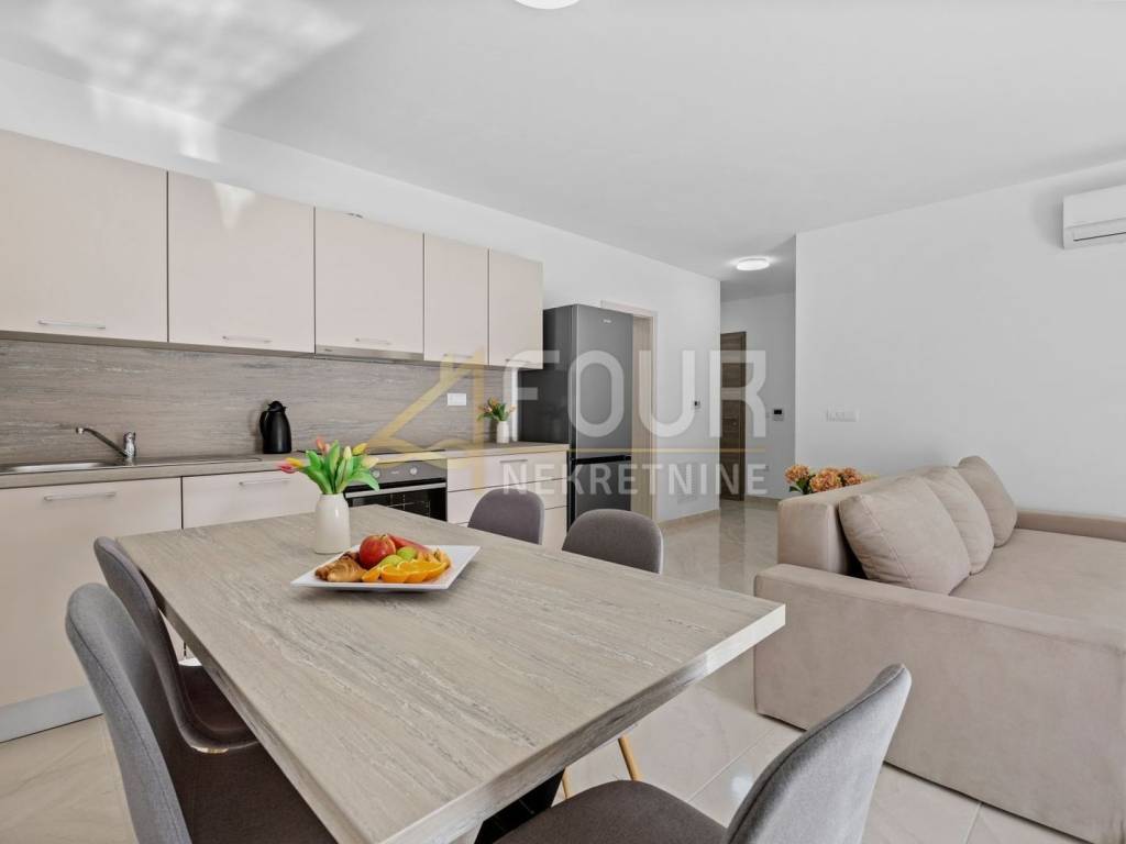 Peroj - a modern apartment in a newly built building from 2021 is for sale. With a total area of 54.09m2, the apartment has an ideal layout: it consists of a hallway, two comfortable bedrooms, a bathroom, a spacious living room connected to the dining area and kitchen, and a balcony of 4.89m2 with views of the surroundings. The apartment is equipped with underfloor heating in the bathroom, kitchen, and living room, PVC joinery with double-layer argon-filled thermal insulation glass and blinds, and heating and cooling are additionally provided by an air conditioning unit. Large-format quality ceramics are installed in the living room, kitchen, and bathroom, while ceramic imitation parquet is found in the bedrooms. The balcony features non-slip ceramics. The building has ETICS thermal insulation facade with 10 cm of insulation, and the exterior is landscaped with native Istrian plants. The price of the apartment includes sanitary ware and kitchen, while additional furniture is available at an extra cost of €7,000. The apartment also comes with an outdoor parking space paved with quality cobblestones for durability and easier maintenance. It is 950 meters away from the sea, and only 300 meters from the center of Peroj, making it an excellent opportunity for living, vacation, or investment.