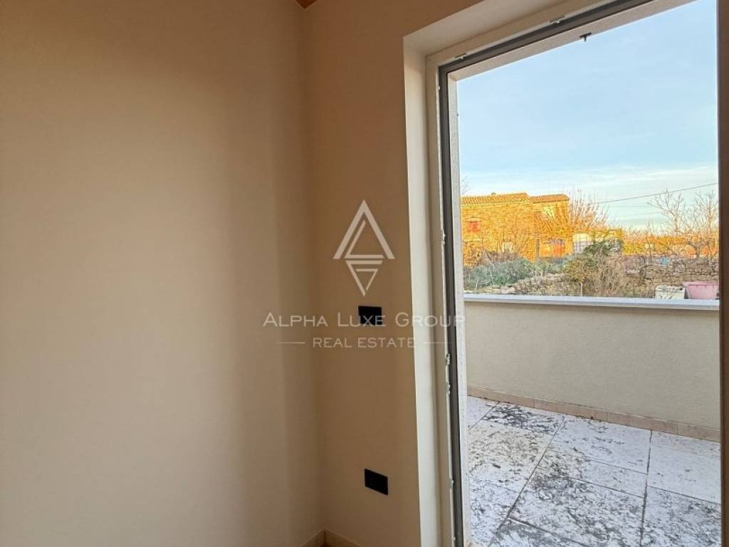Just a short 10 minute drive from Momjan, near the Slovenian border, this beautifully crafted traditional Istrian stone house offers 130 m² of refined living space and a generous 1,000 m² landscaped plot. The ground floor features an open concept living area with a modern kitchen and dining space, a laundry room and a bathroom. Upstairs, three spacious bedrooms each enjoy their own private bathroom, providing comfort and privacy for residents and guests.