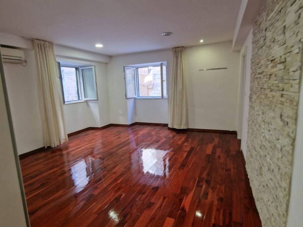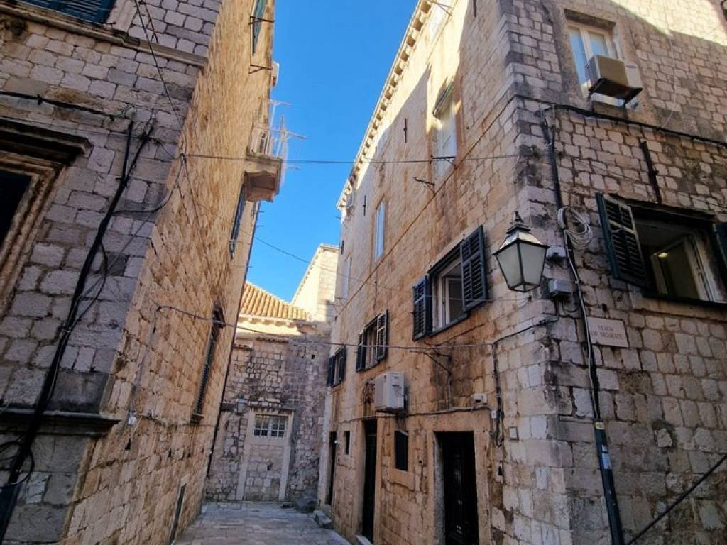 The apartment is located on the upper floor of a building in Prijeko Street, right next to the Franciscan monastery of the Friars Minor, only 40 meters from the main street, Stradun. It consists of bedroom 22,94 m2, dinning room 14,63 m2 ,a kitchen 8,97m2, a storage room 2,1 m2, an entrance hall 6,27 m2, a bathroom 6,38 m2, a laundry room 3,17 m2, and an additional storage room on the ground floor of the building 1,92 m2. The total usable area is 66, 38 m2, or 58,19m2 calculated.