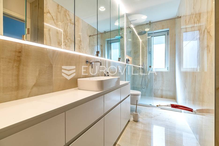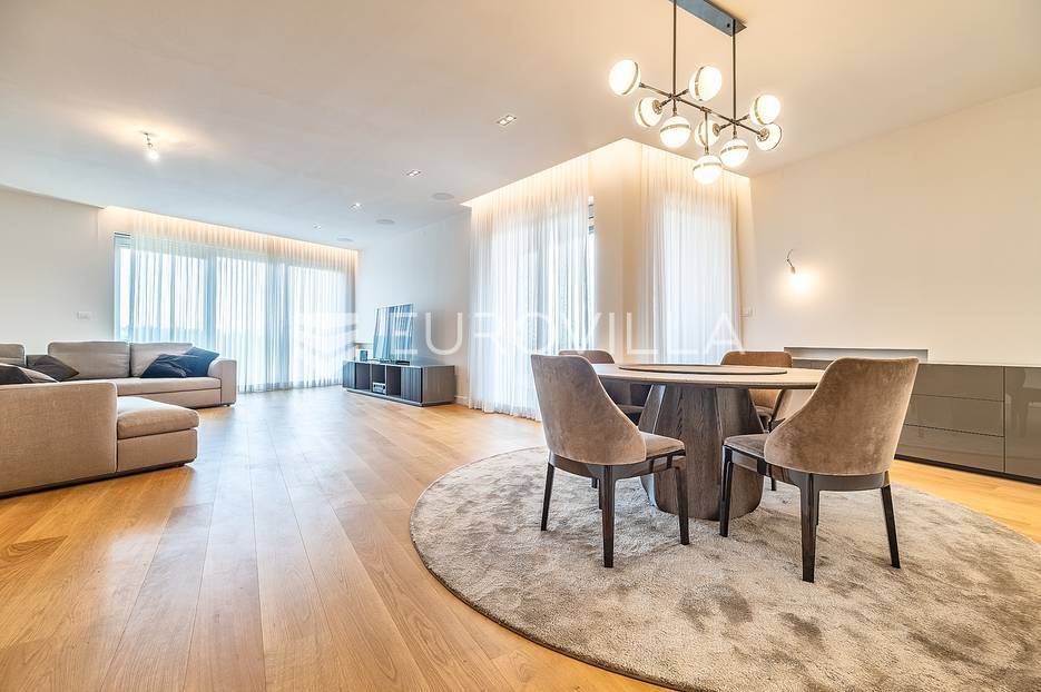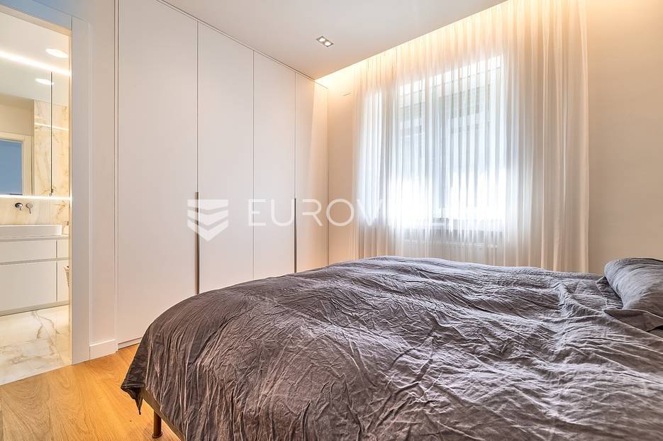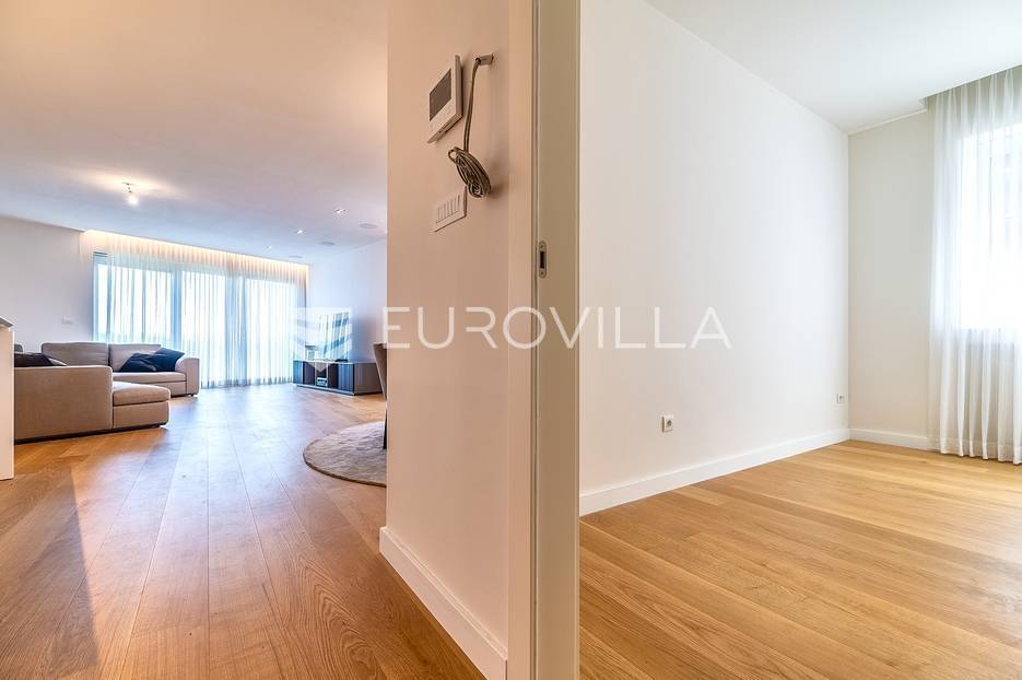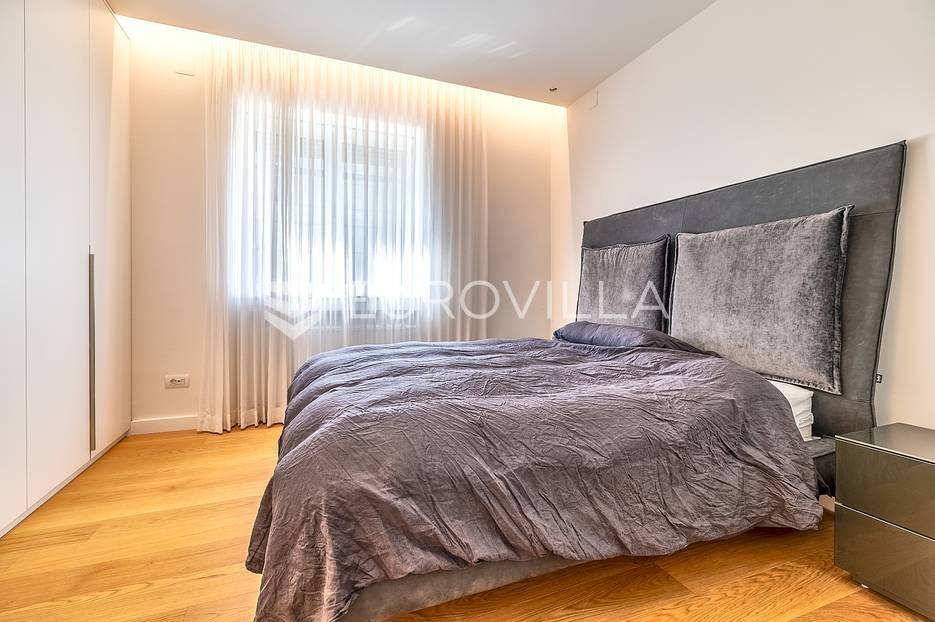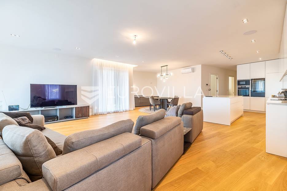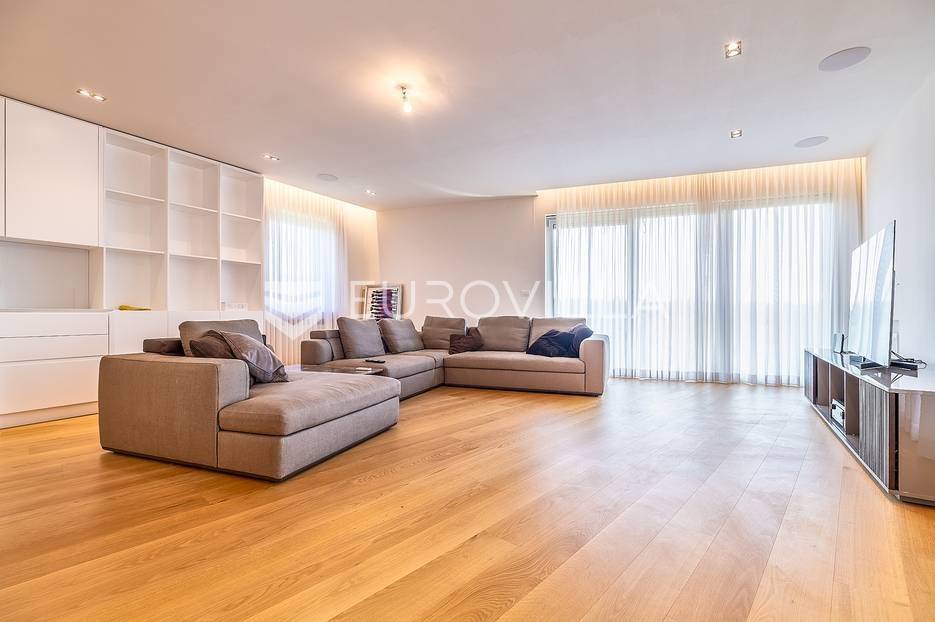 Tuškanac, novogradnja, luksuzno uređen četverosoban stan zatvorene površine 131 m² sa natkrivenom terasom 20m2 (10), sa garažom 17m2 (8,5), ostavom 11m2 (5,5) i parkirnim mjestom 13m2 (3,25). Ukupno NKP 158m2.Tri spavaće sobe, dvije kupaonice, prostran dnevni boravak s kuhinjom i blagovonicom, prekrasna natkrivena terasa sa panoramskim pogledom na grad.Klima, videoportafon, videonadzor, alarm, visina stropa 290 cm. Zgrada je izuzetno kvalitetno građena sa grijanim prilazom za automobile. Vanjska stolarija aluminij, termi ventilirajuća fasada.Ostale infomacije na upit.
