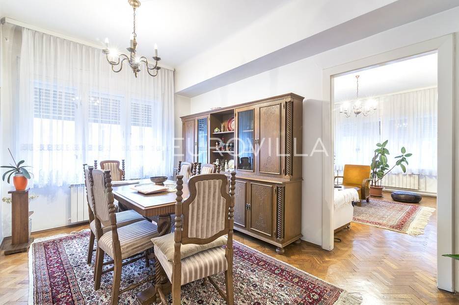 U srcu stare Šalate, mirna ulica, prodaje se četverosoban stan površine NKP 107 m2. Održavana zgrada sagrađena 1938. god, nova fasada (stiropor 8cm), novo ventilirajuće krovište (2014).U visokom prizemlju četverosoban stan zatvorene površine 101 m2, sastoji se od ulaznog hodnika, dvije sobe, kuhinje s balkonom (koju je moguće pretvoriti u spavaću sobu), blagovaonice (u koju je moguće preseliti kuhinju) te dnevnog boravka.Stan je dobro održavan, adaptiran 1996. god (elektroinstalacije i plinske instalacije). Etažno plinsko grijanje, klimatiziran. Visina stropa 290 cm.Nalazi se u blizini osnovne škole, trgovine, 10 min pješice do Trga Bana Jelačića.Za sve ostale upite stojimo na raspolaganju.