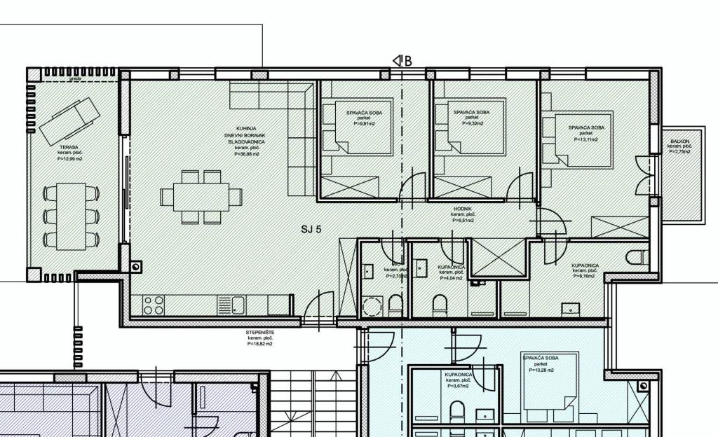 The building consists of a basement with garages and storage areas, providing residents with practical parking solutions and additional storage space. The ground-floor apartments have the advantage of their own garden, ideal for relaxing outdoors. On the first floor, the apartments feature spacious terraces and balconies that offer excellent views and space for socializing, while the second-floor apartments, in addition to terraces, have access to impressive rooftop terraces, adding a special charm and exclusivity.